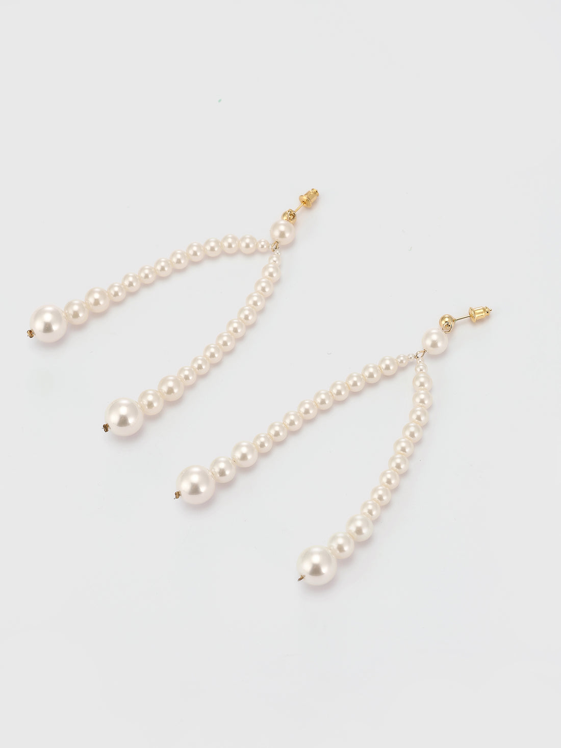 Gold posts with pearls that hang like punctuation marks. Subtle movement, loud presence.