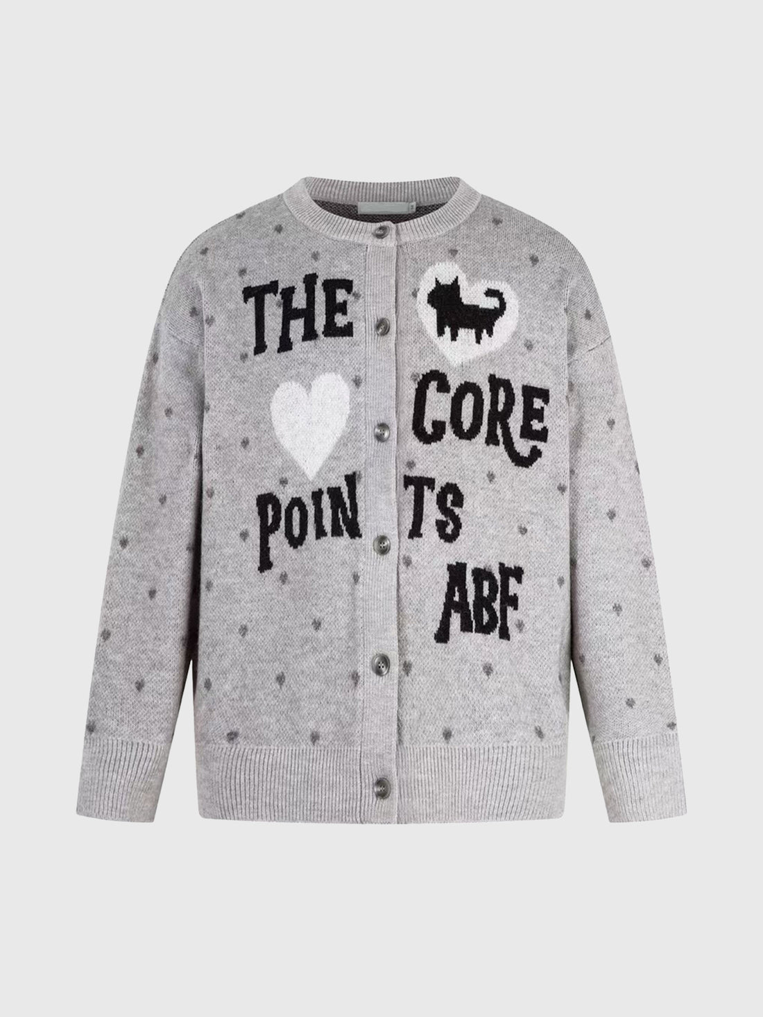 Words, stitches, and warmth. This cardigan speaks softly but stands out โ the contrast typography...