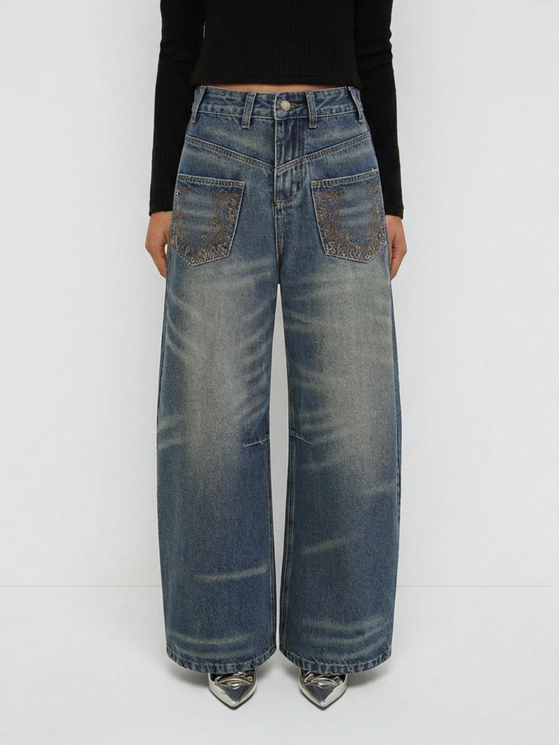Stage Light Denim Barrel Pants – Coal Black