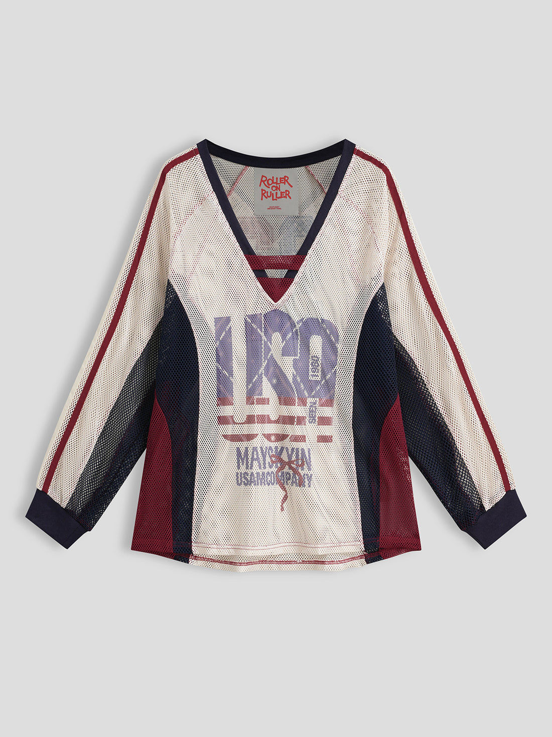 Your favorite thrifted jersey, reimagined. This mesh top is your not-so-basic base layer—lightweight, semi-sheer, and...