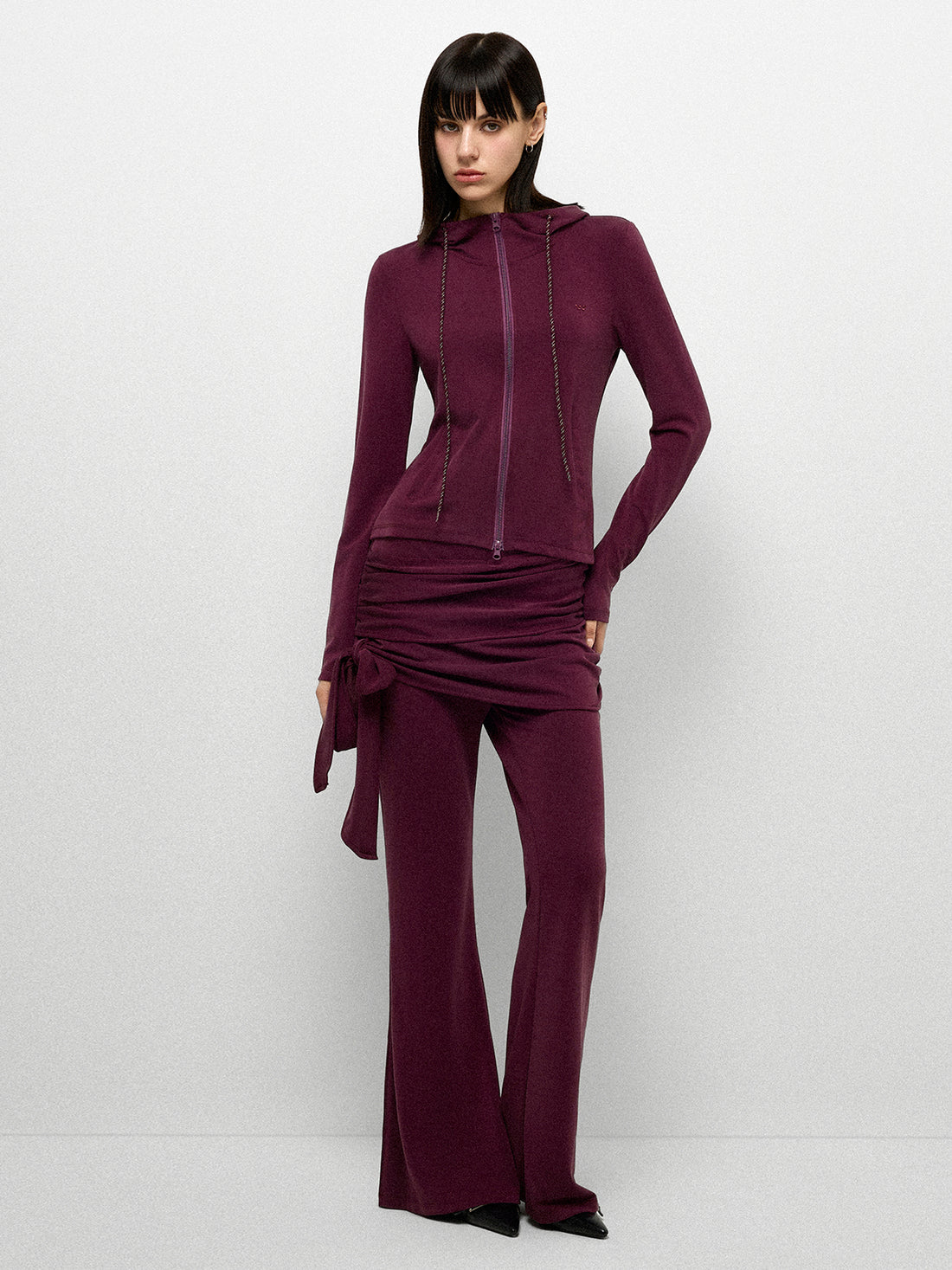 As chic as an evening stroll by the lake, this ribbed burgundy hoodie blends calm...