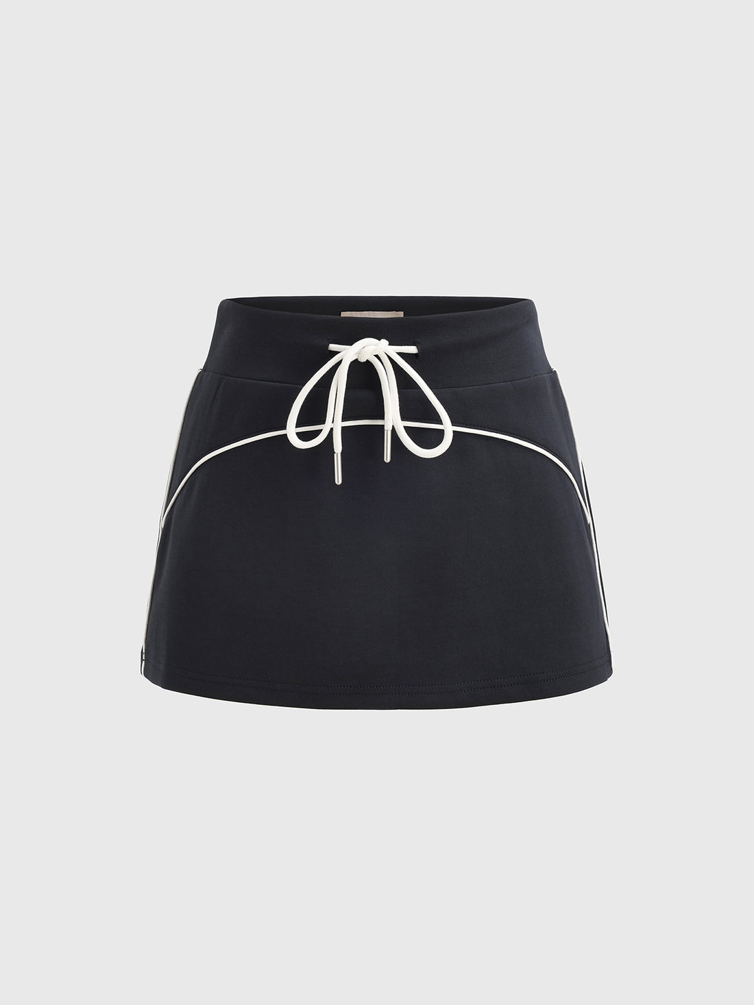 Playful piping, tied up just right. This skirt turns a jersey base into something...