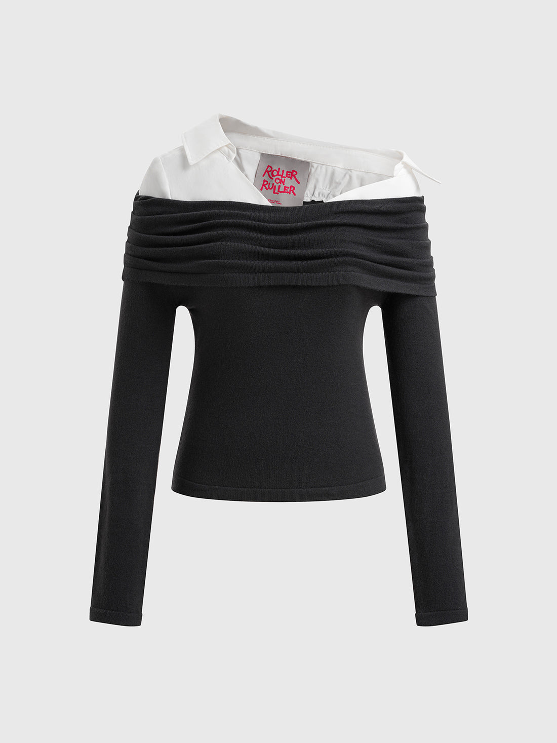 Off-shoulder confidence, reimagined. The soft knit hugs lightly while the white collar detail adds a...