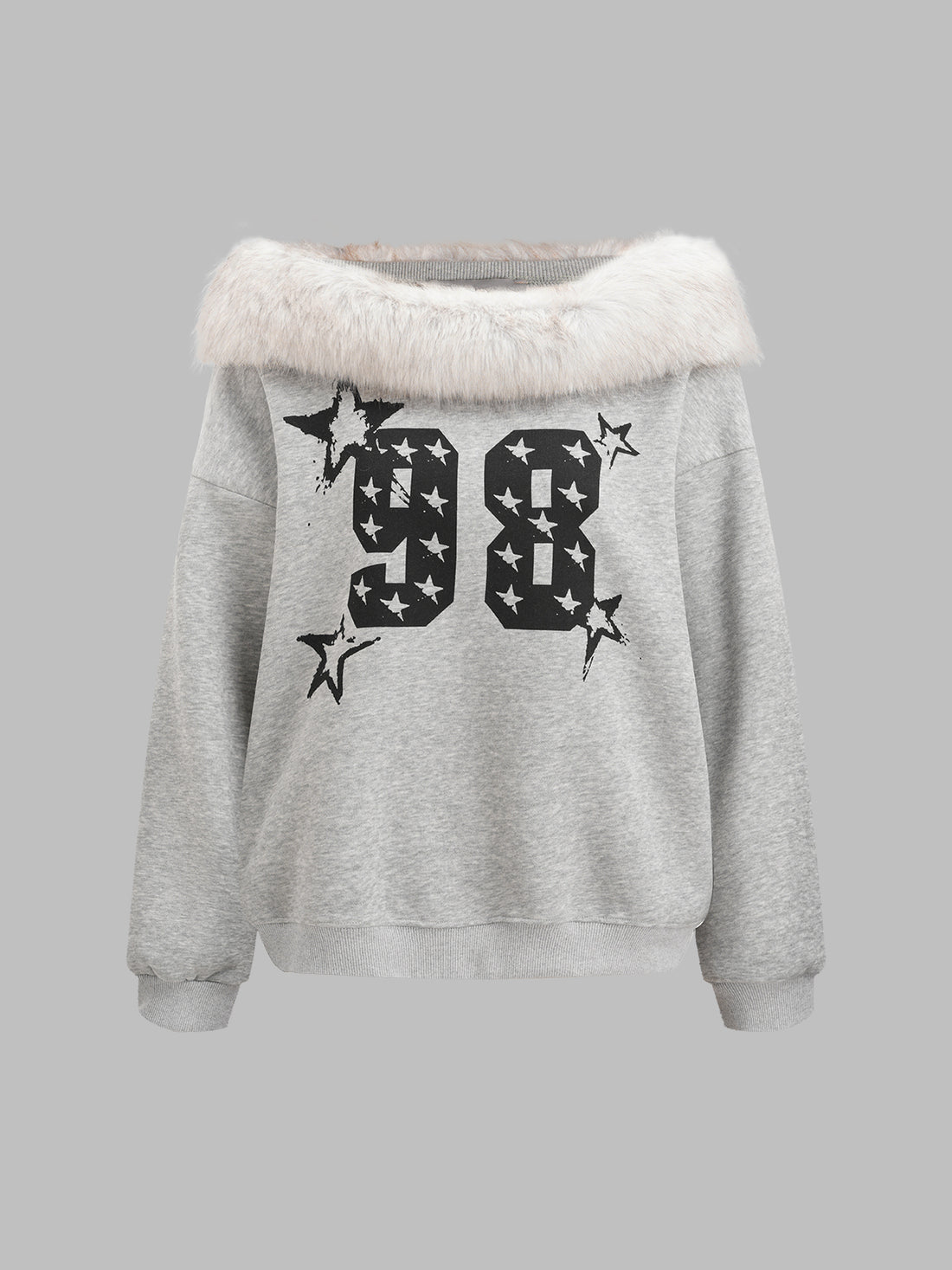 A soft rebellion in fur trim and star prints. This off-shoulder knit turns the simplest...