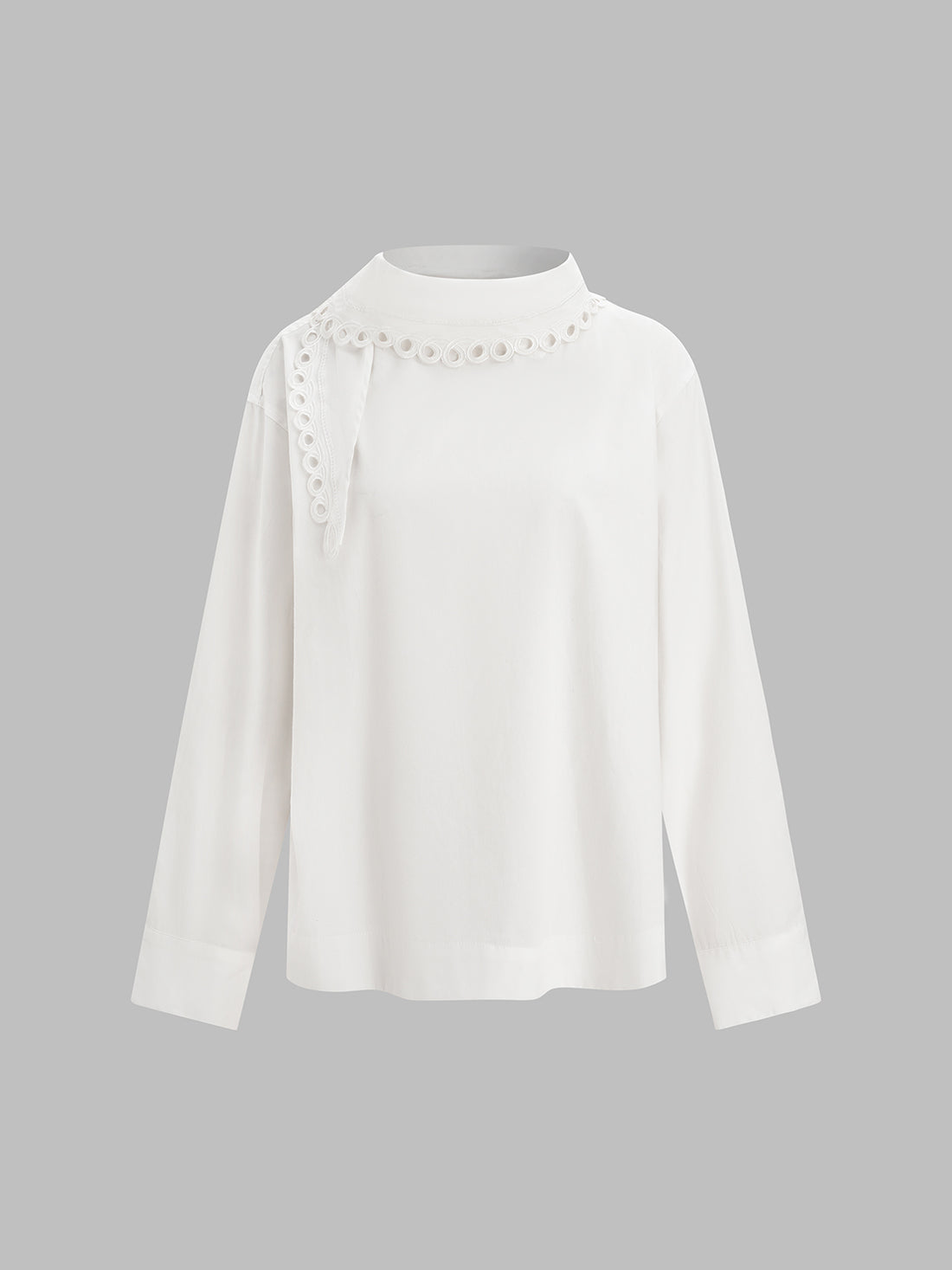 A whisper of lace at the collar, light as conversation over tea. This blouse softens...