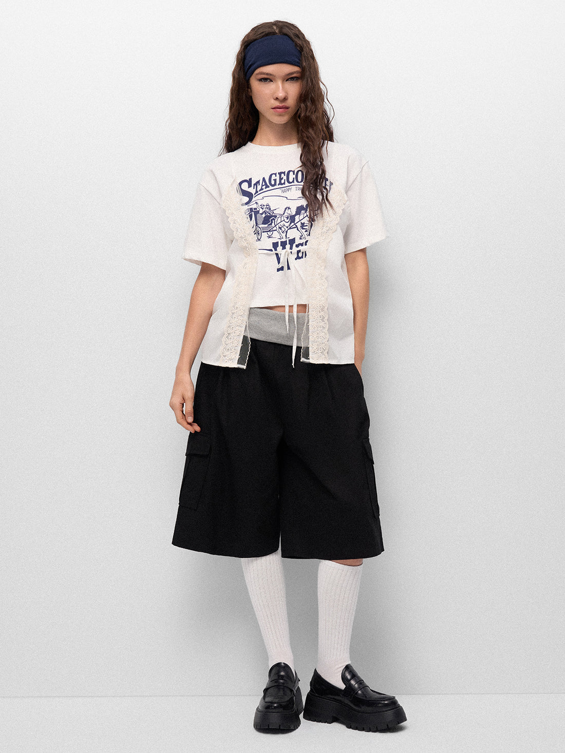 This isn’t your average white shirt—it’s got texture, lace, and just enough attitude to skip...