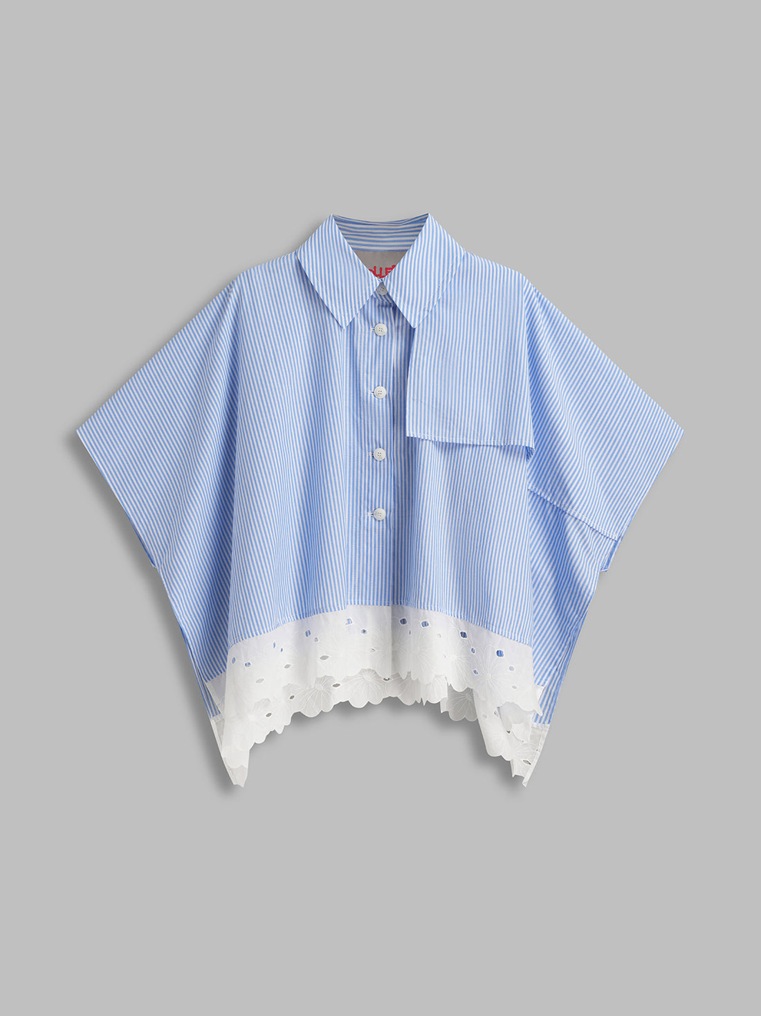 Part structure, part romance. Classic stripes get a surprise ending: delicate lace trim that flips...