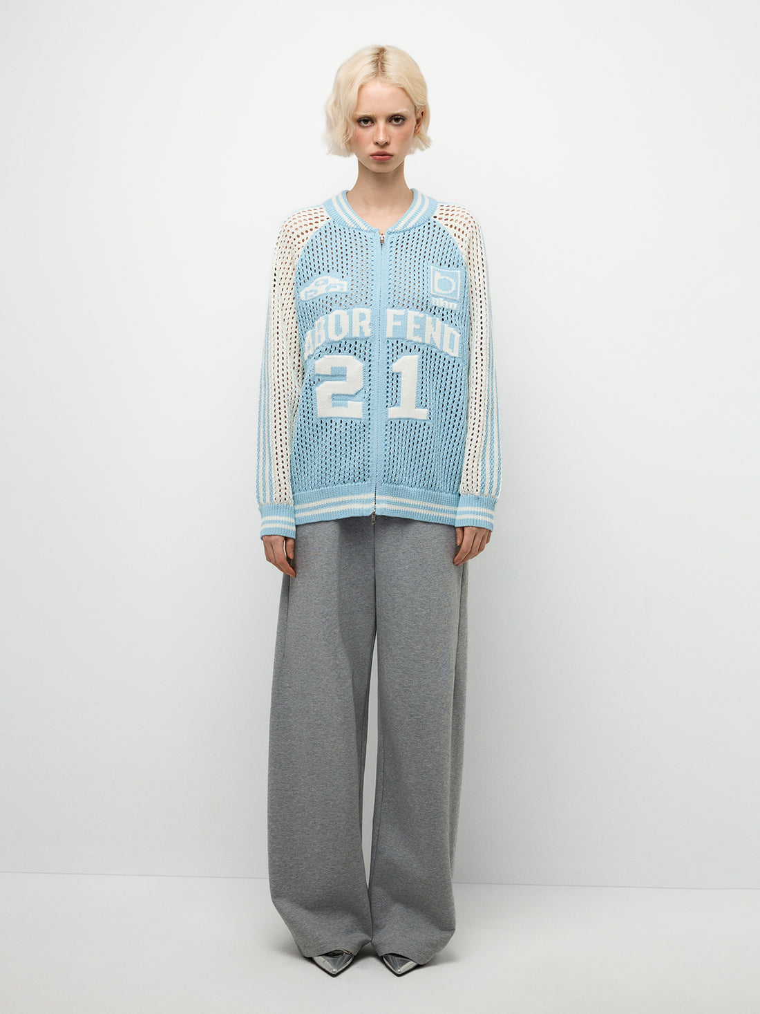 Mesh-Knit Zip-Up Knit Varsity Jacket – Powder Blue