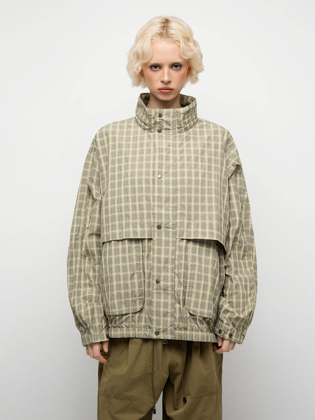 A check-pattern windbreaker with a roomy cut that layers over anything. Lightweight and crisp, it...