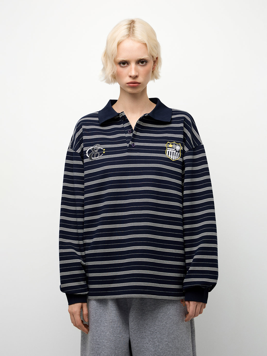 A washed-grey sweatshirt with sporty sleeves and scattered star graphics. Nostalgic yet current, designed to...