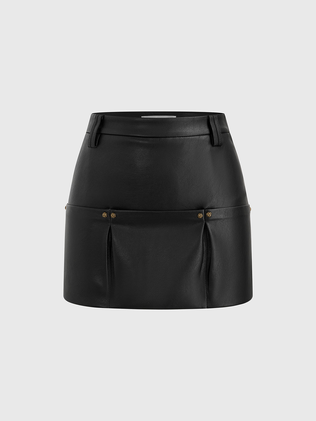 Sheer Authority Leather Mini Skirt – Dark Brown