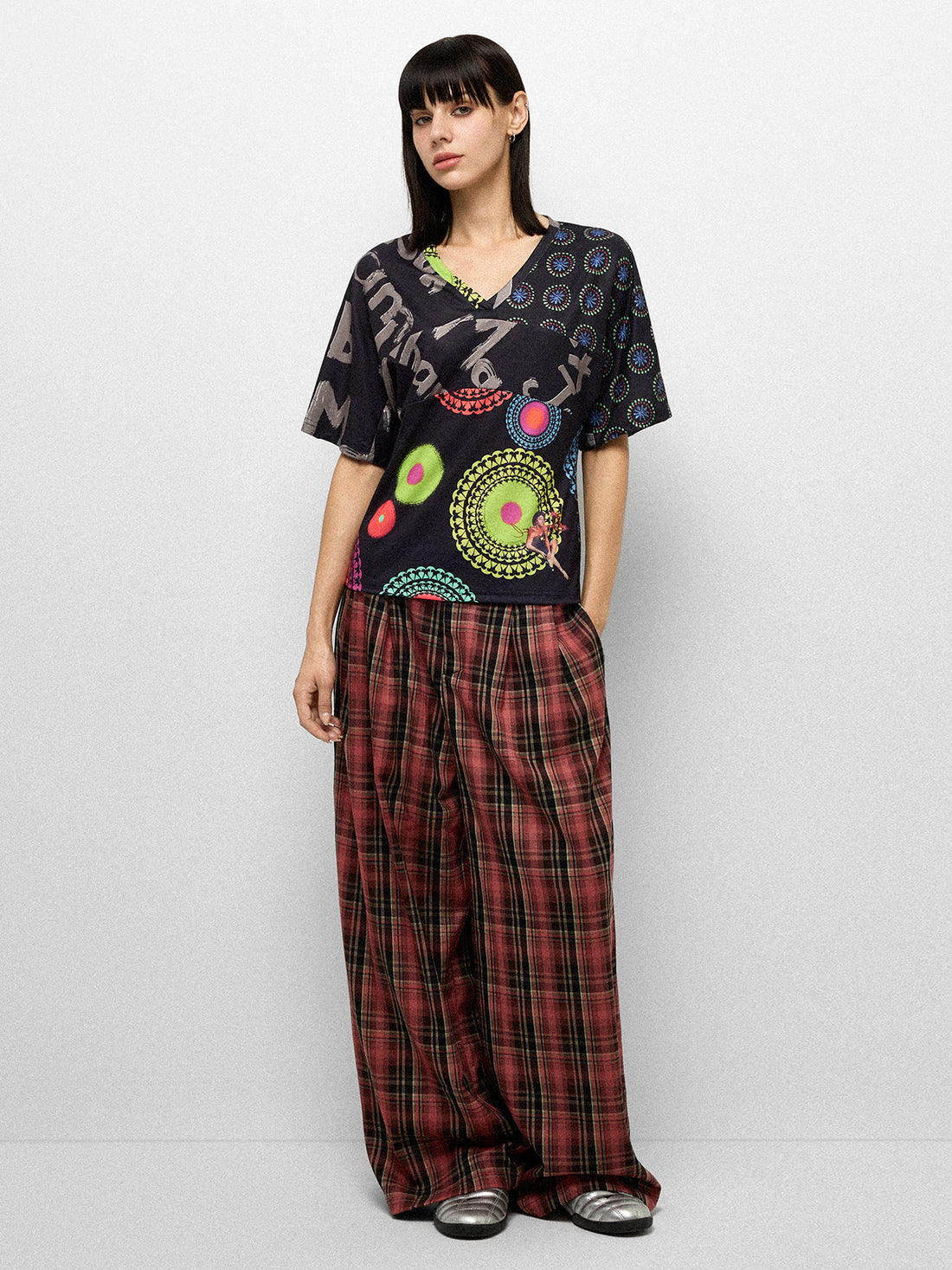 A colorful tee buzzing with neon graphics like club posters at 3AM. Chill fit, loud...