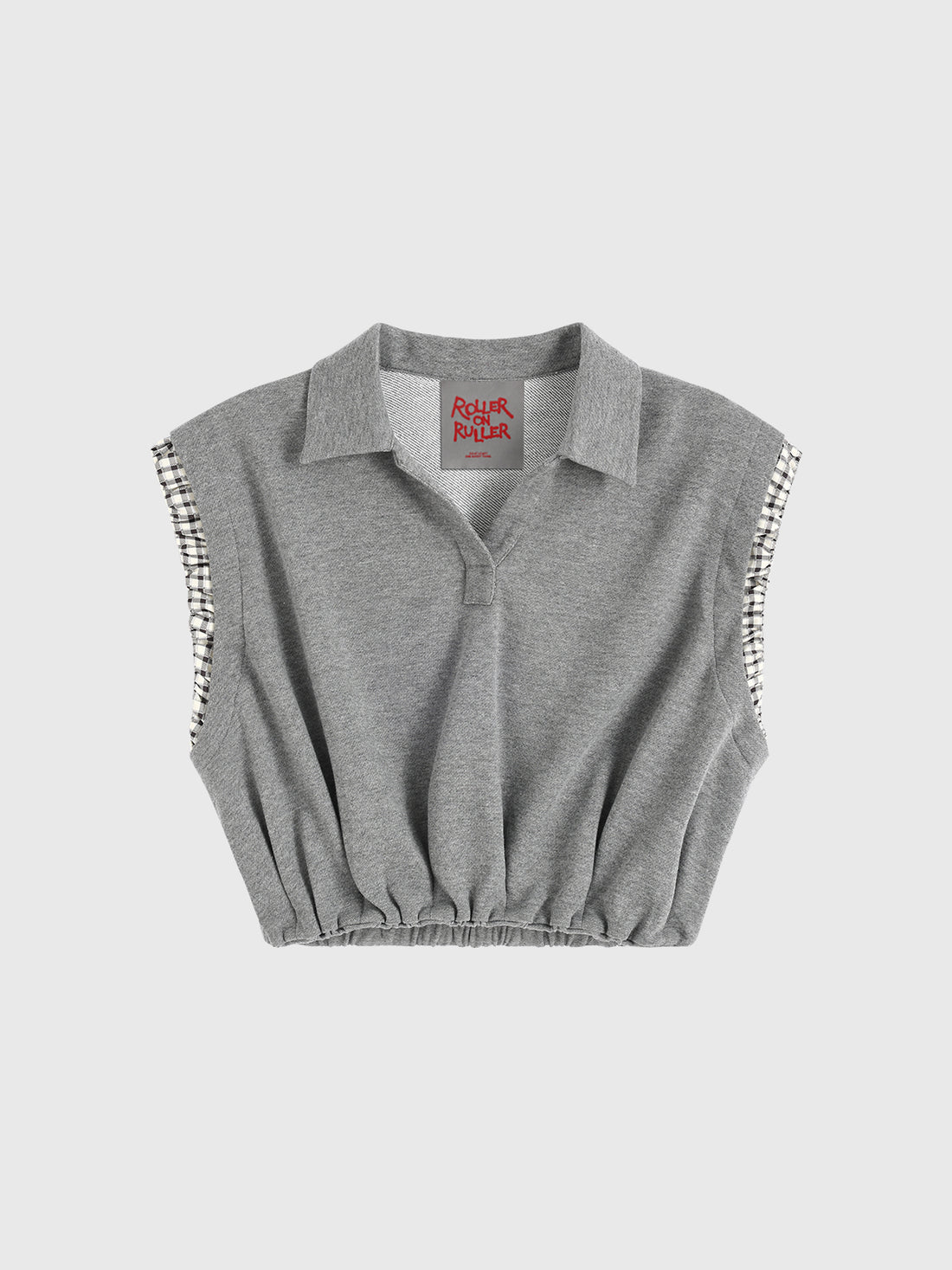 Wrinkle Check Cuff Tank - Light Grey
