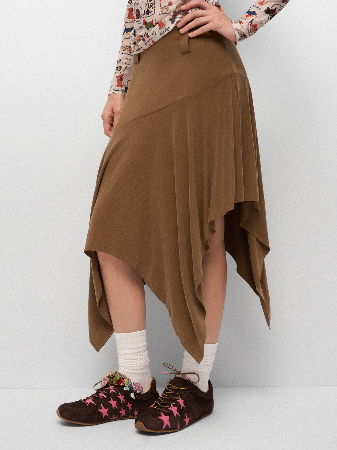 For those who do spreadsheets with Spotify blasting. This skirt features an irregular hemline that...