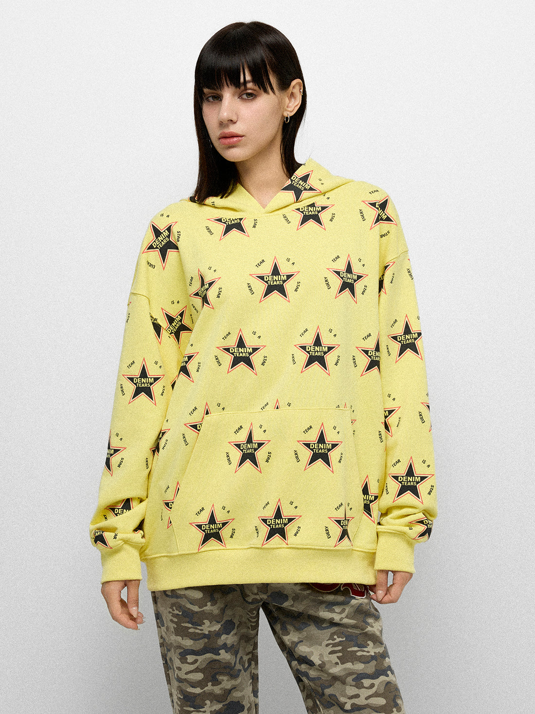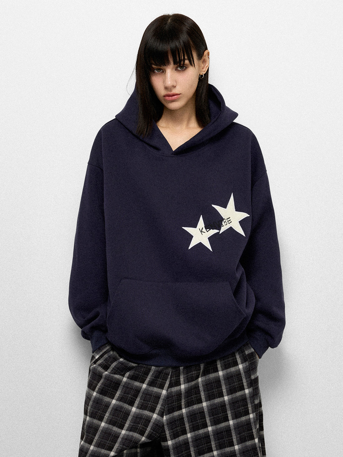 A hoodie sprinkled with black stars like it raided the night sky. Bright enough to...