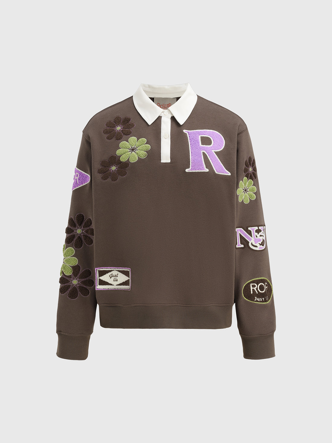 Campus club energy, upgraded. With playful “R” and varsity patch details, this sweatsuit carries the...