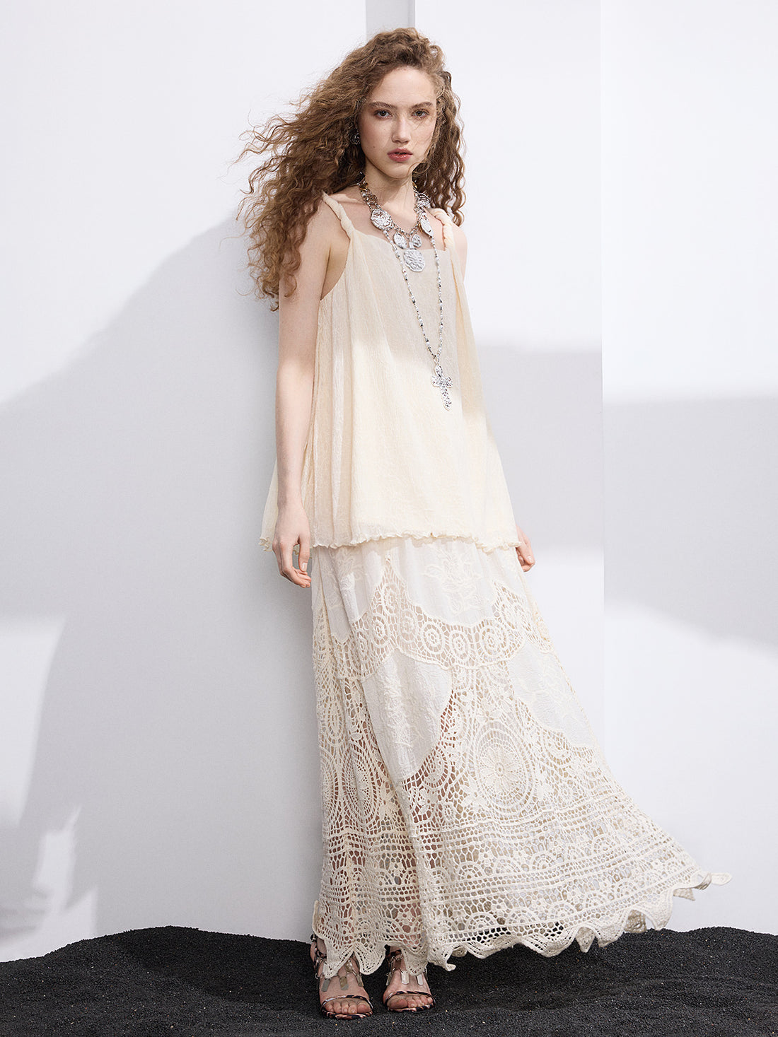 Diary Page Draped Slip Dress - Ivory White
