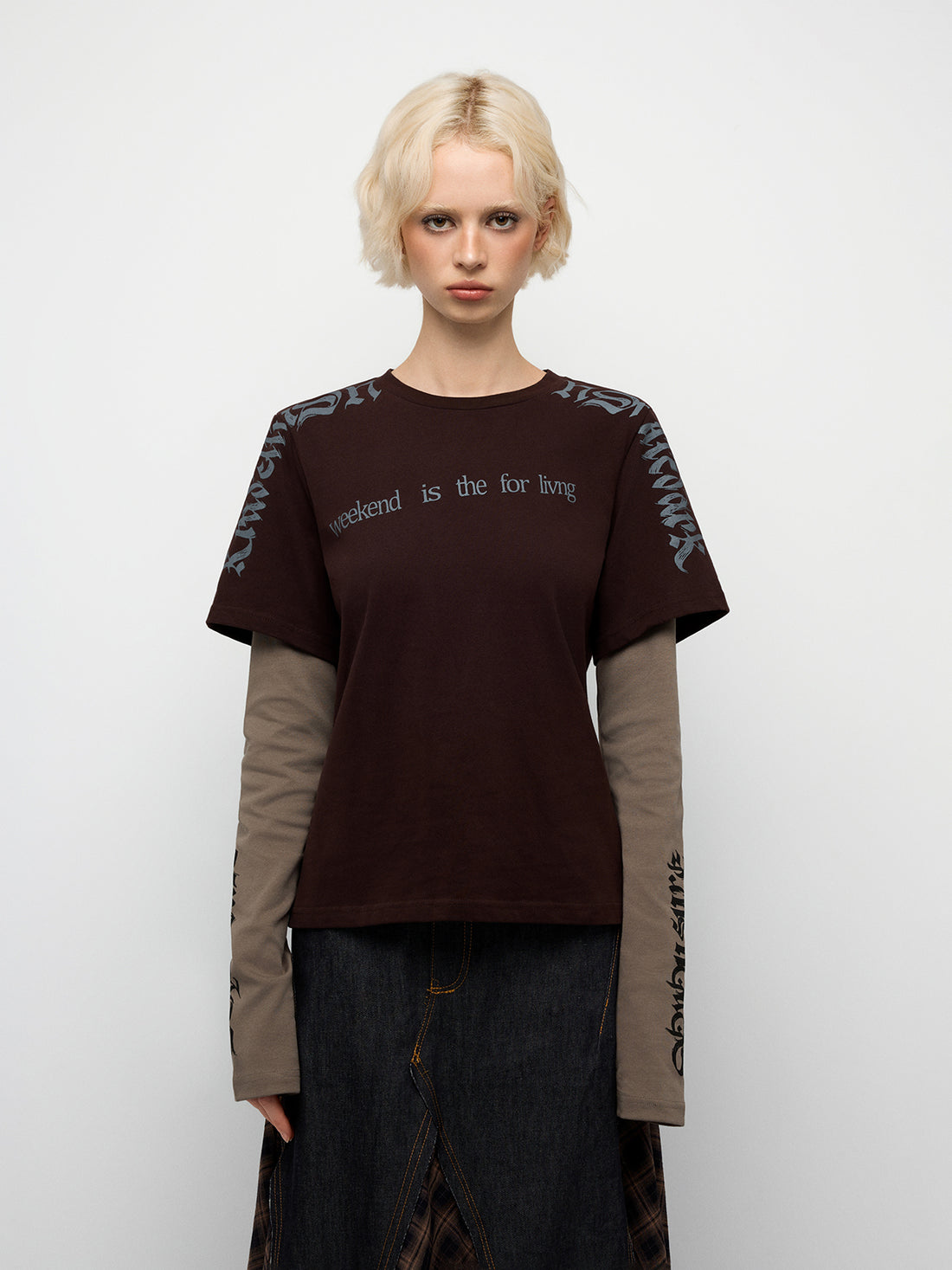 A bold short-sleeve tee in rich mocha brown, blending street attitude with vintage charm. The...