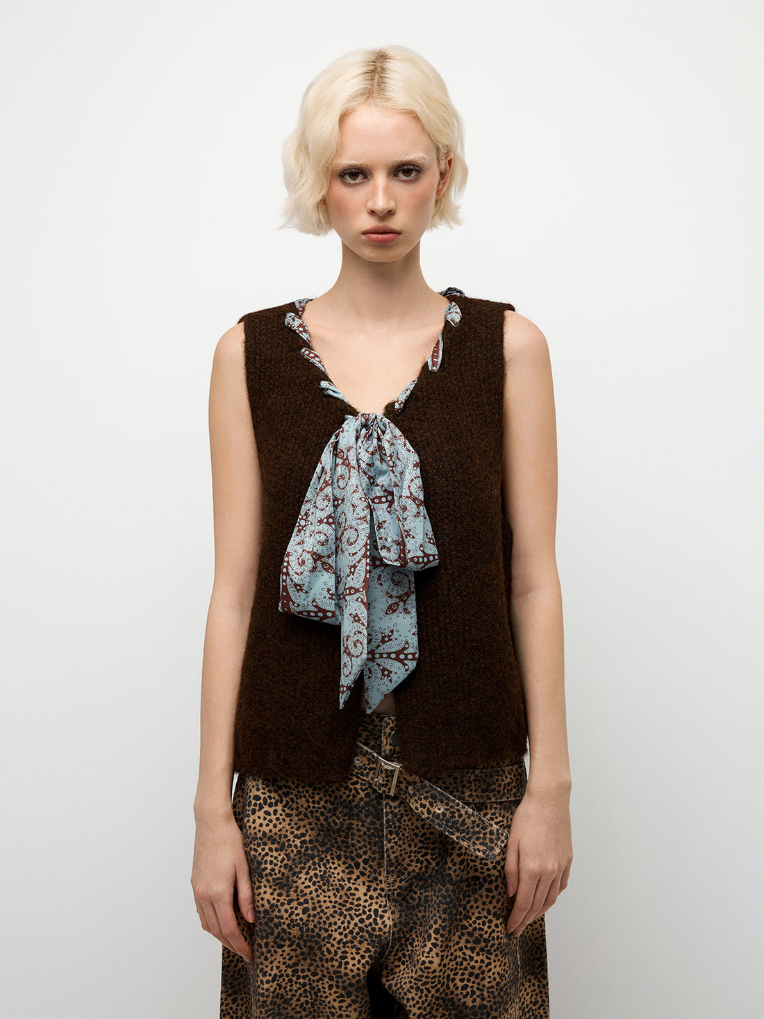 Cozy texture, refined bow — this vest balances warmth with a playful flourish. Ideal for...