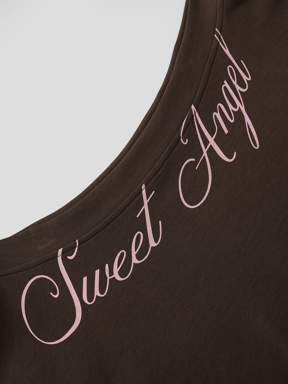 Dark cocoa tones meet soft pastel lettering—think late-night tennis mixed with secret diary entries. The off-shoulder hoodie brings ease, while the pleated skirt keeps it light. Sneakers or boots, this one scores in every arena.