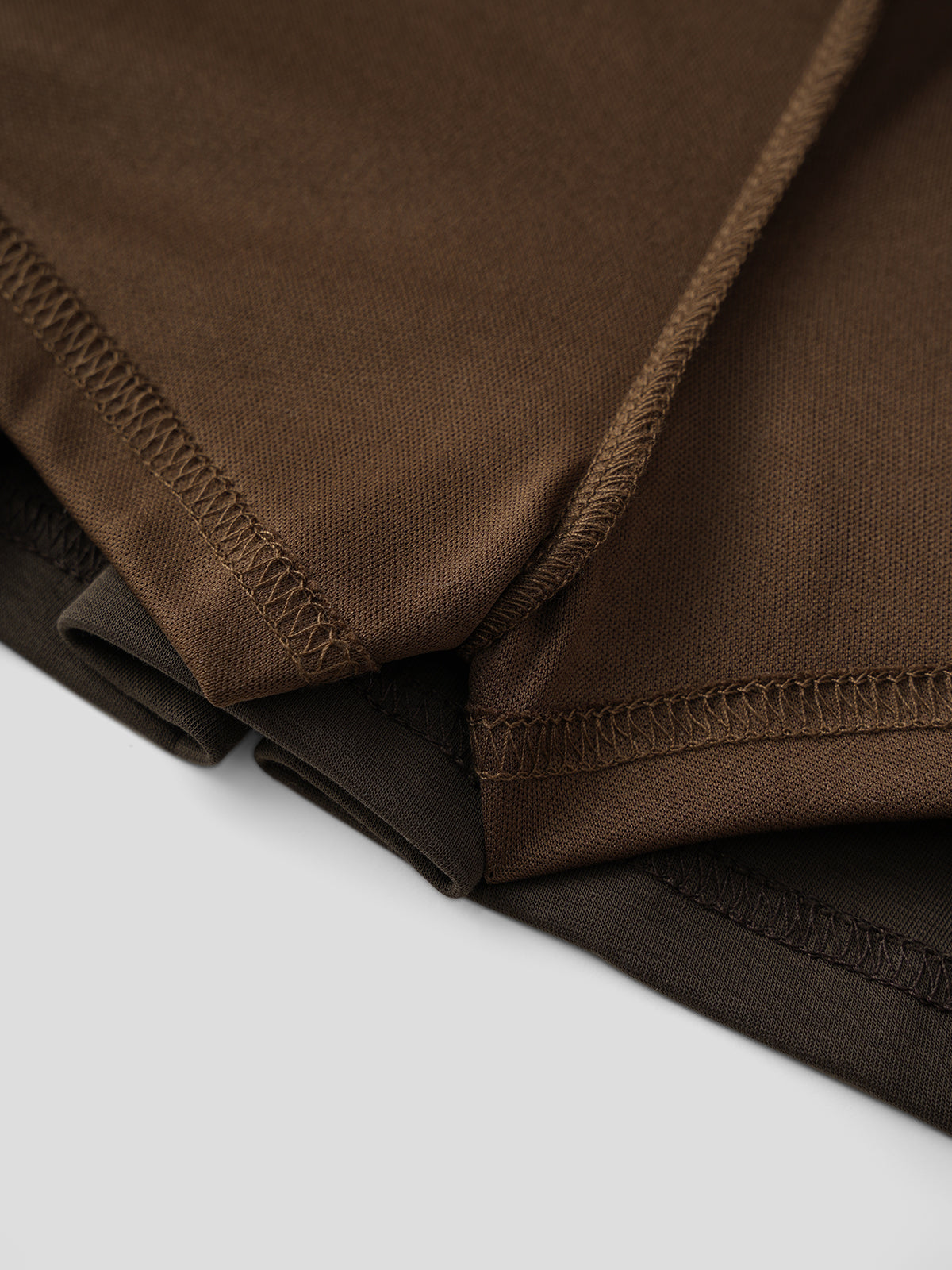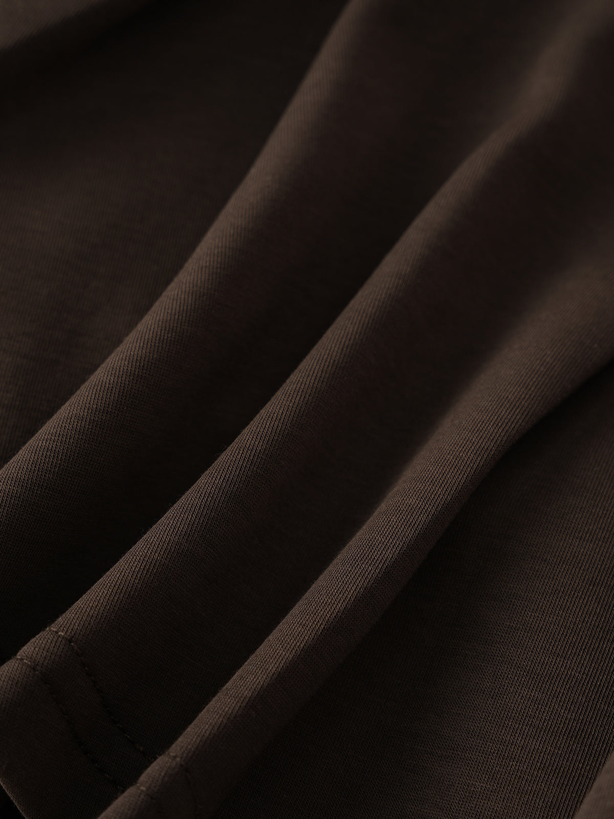 Dark cocoa tones meet soft pastel lettering—think late-night tennis mixed with secret diary entries. The off-shoulder hoodie brings ease, while the pleated skirt keeps it light. Sneakers or boots, this one scores in every arena.