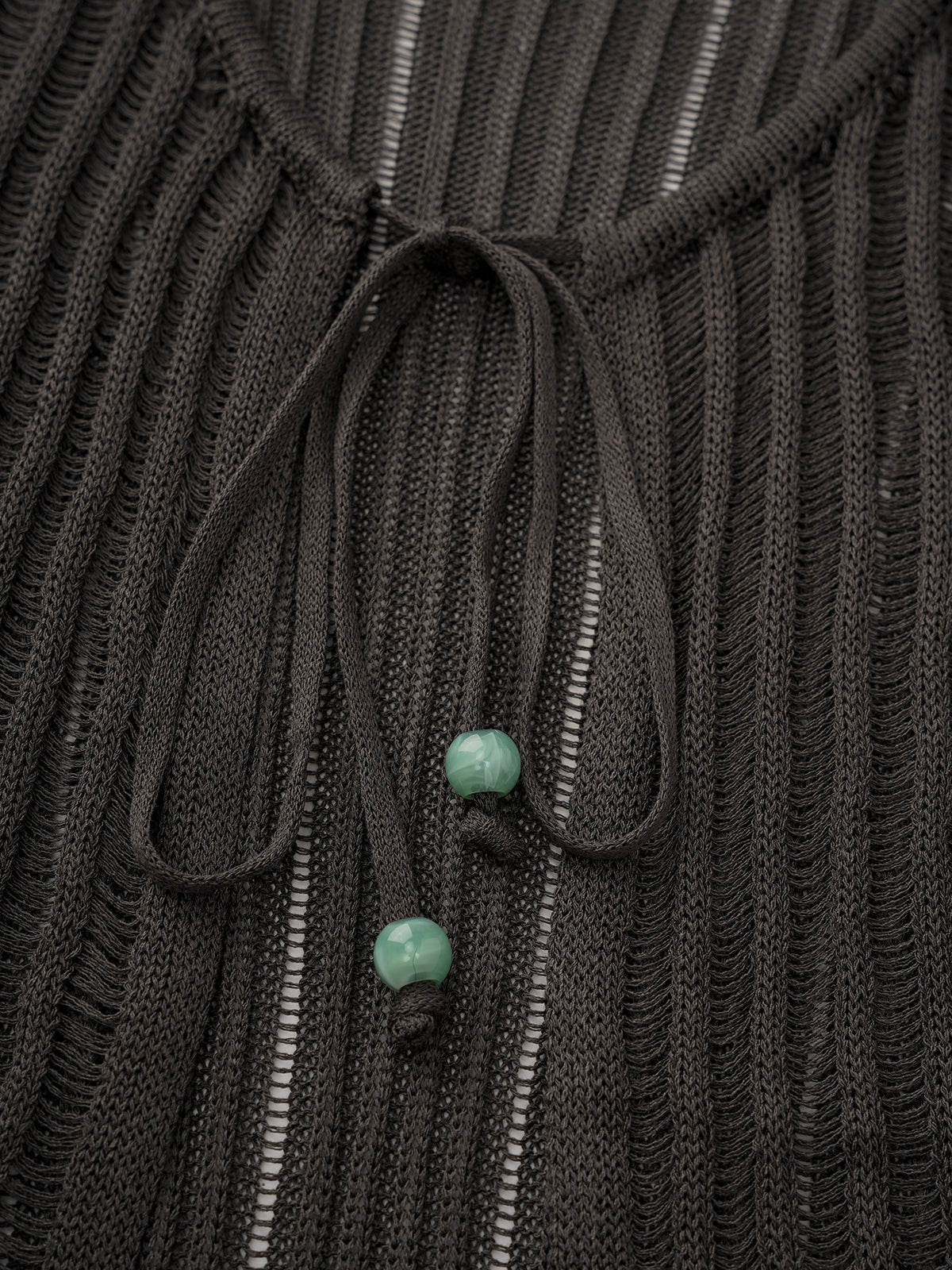 A fitted black top with ruched front and adjustable ties. It’s minimal at first glance, but the details make it versatile—sharp enough for city errands, playful enough for nights out.