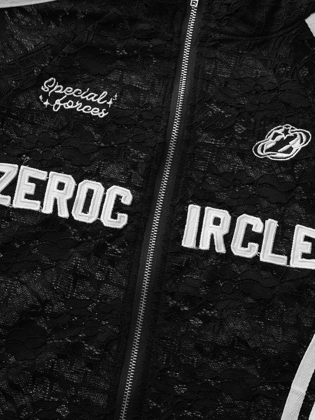 Circle Cut Lace Zip Jacket - Black White