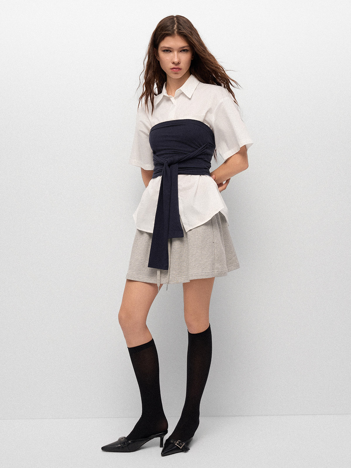 This one’s like a desktop shortcut for looking styled. Clean tube cut and a tie-up front that says “low effort, high return.” Works with shirts inside or just eye contact.