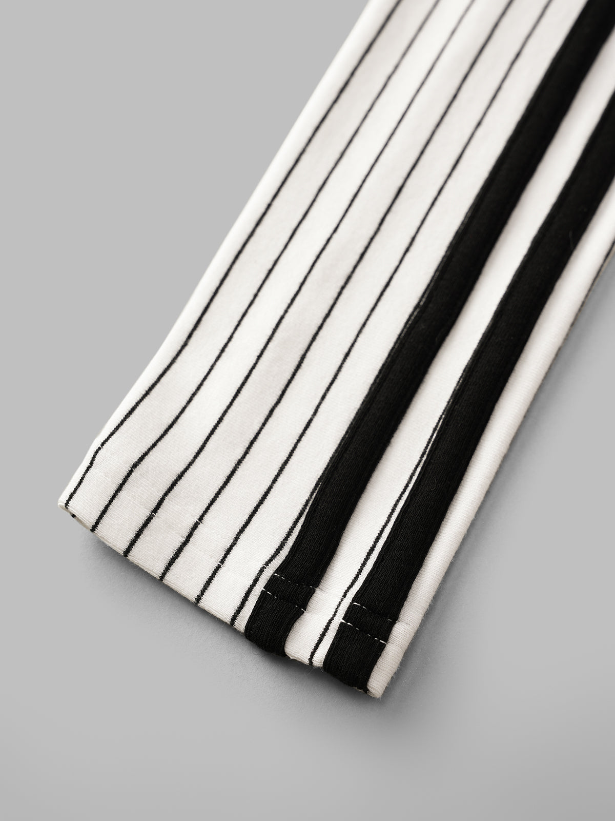 Designed like you walked through a wind tunnel of tennis strokes. This stretchy long sleeve top looks like a physics diagram and feels like a soft serve. It’s clingy, curvy, and comfy — with stripes that looks straight out of a sketchbook.