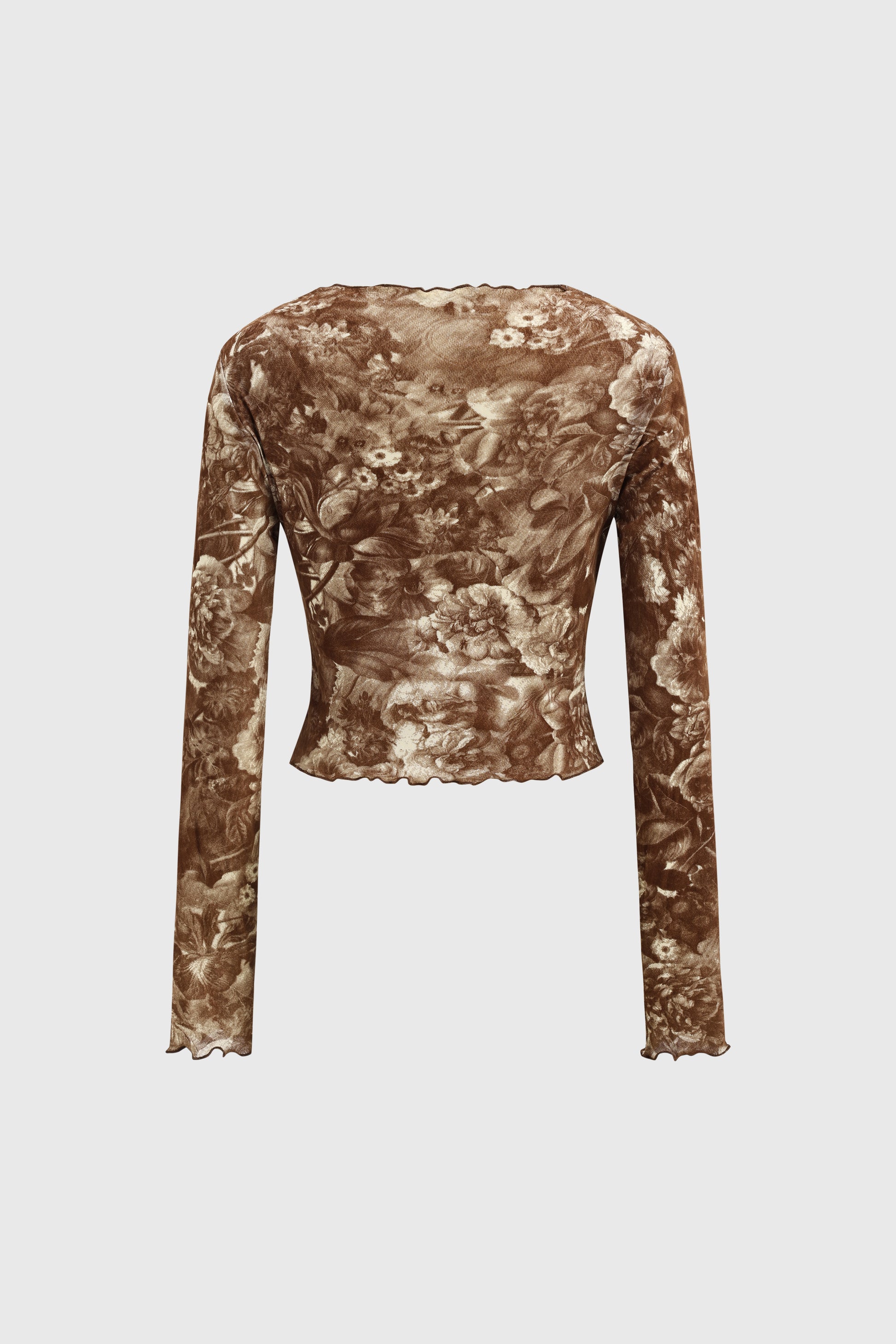 Semi-sheer with a burnout velvet vibe. The print looks like a coffee spill you planned on purpose. For the ones who say “do not disturb” without actually muting anyone.