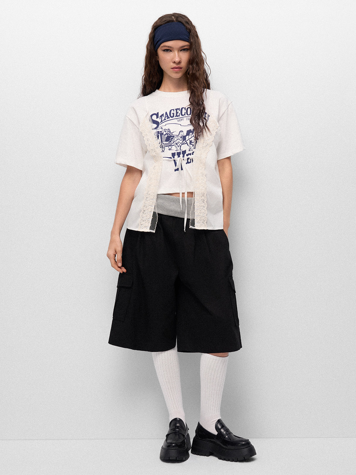 A soft white base with lace signal running through the center. Think romantic core memory, but in a tank. Perfect for office layering or solo coffee walks.