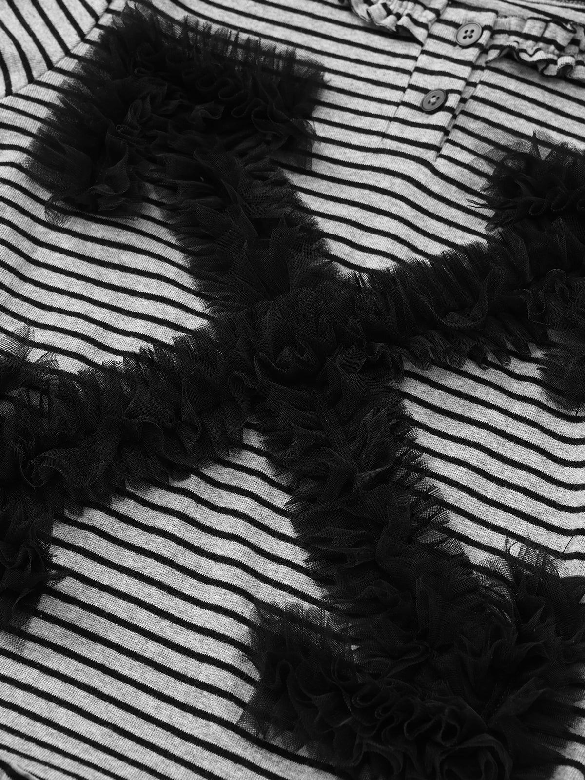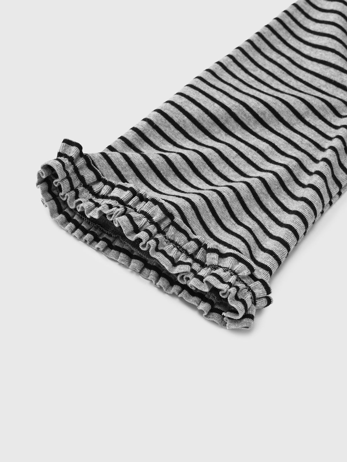 This grey striped set includes a sleeve top, a skirt, and a pair of pants. A soft warning is stitched front and center on the top. The skirt serves as the ultimate mate—seamlessly extending the top or accenting your waist—while the pants move with ease, pair effortlessly with the ruffled top, and look more put-together than your 8am self.