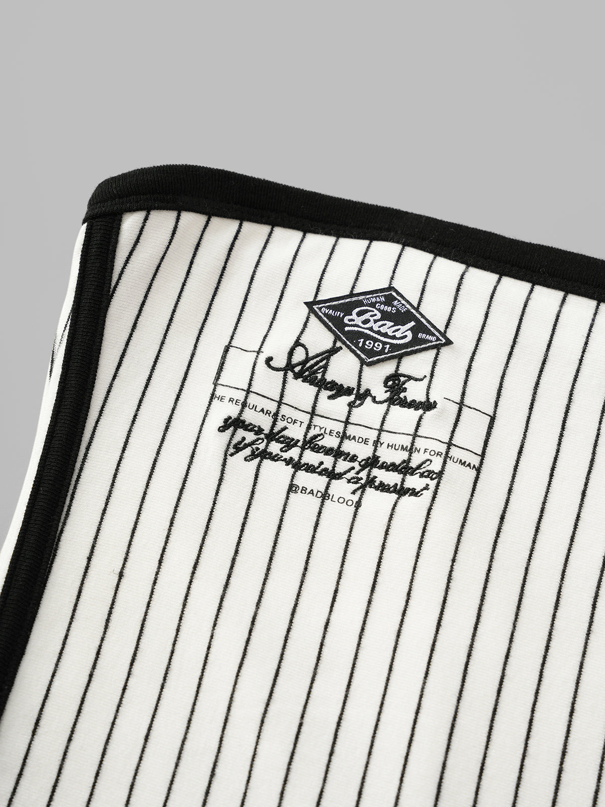 A tube top with both court cred and toe-point elegance. It hugs your torso like a sports stat crush, and the pinstripe print serve sporty realness, while the neckline’s soft frill says: I might’ve done ballet once.