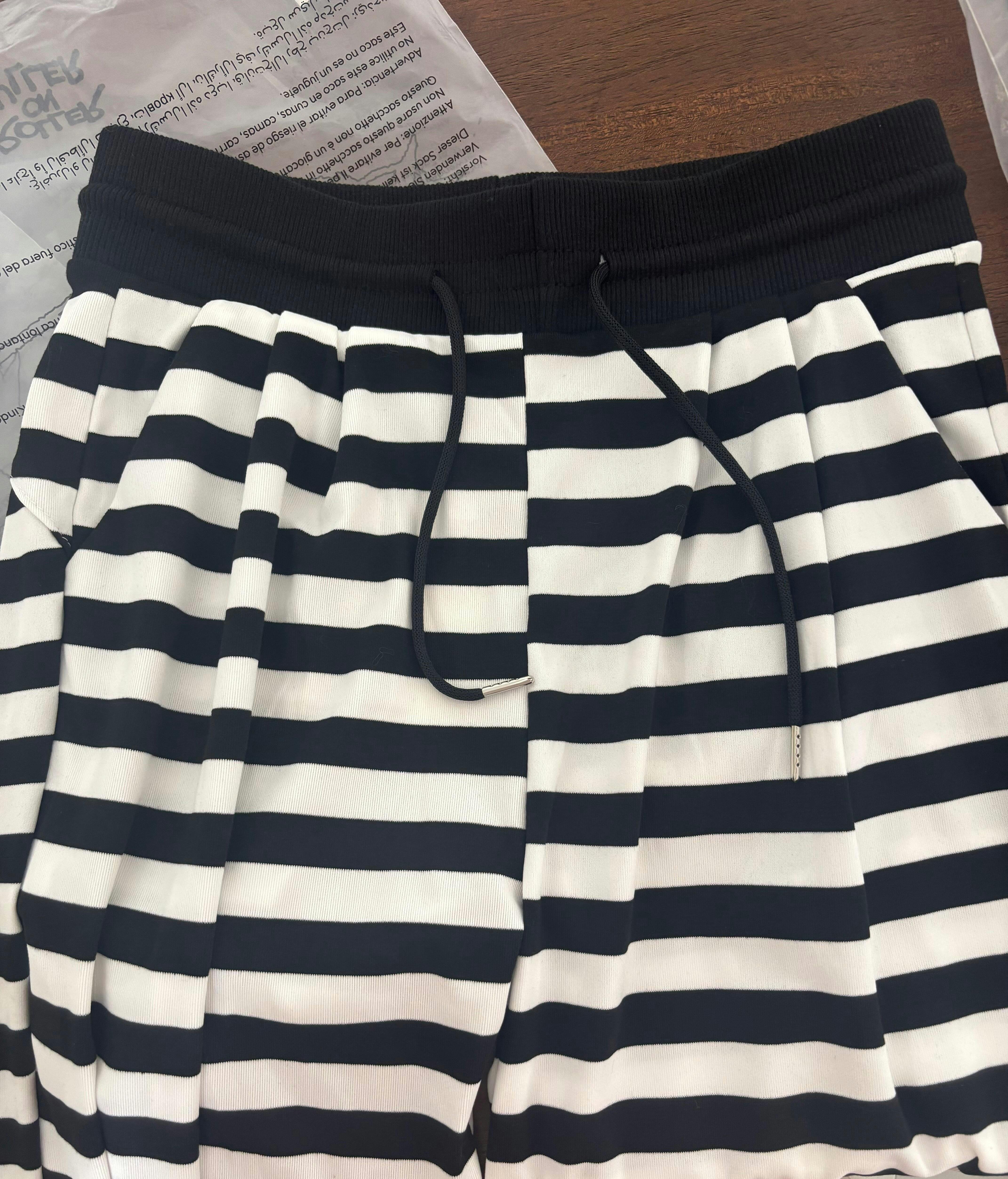 Knitted Stripe Pants - Black White
