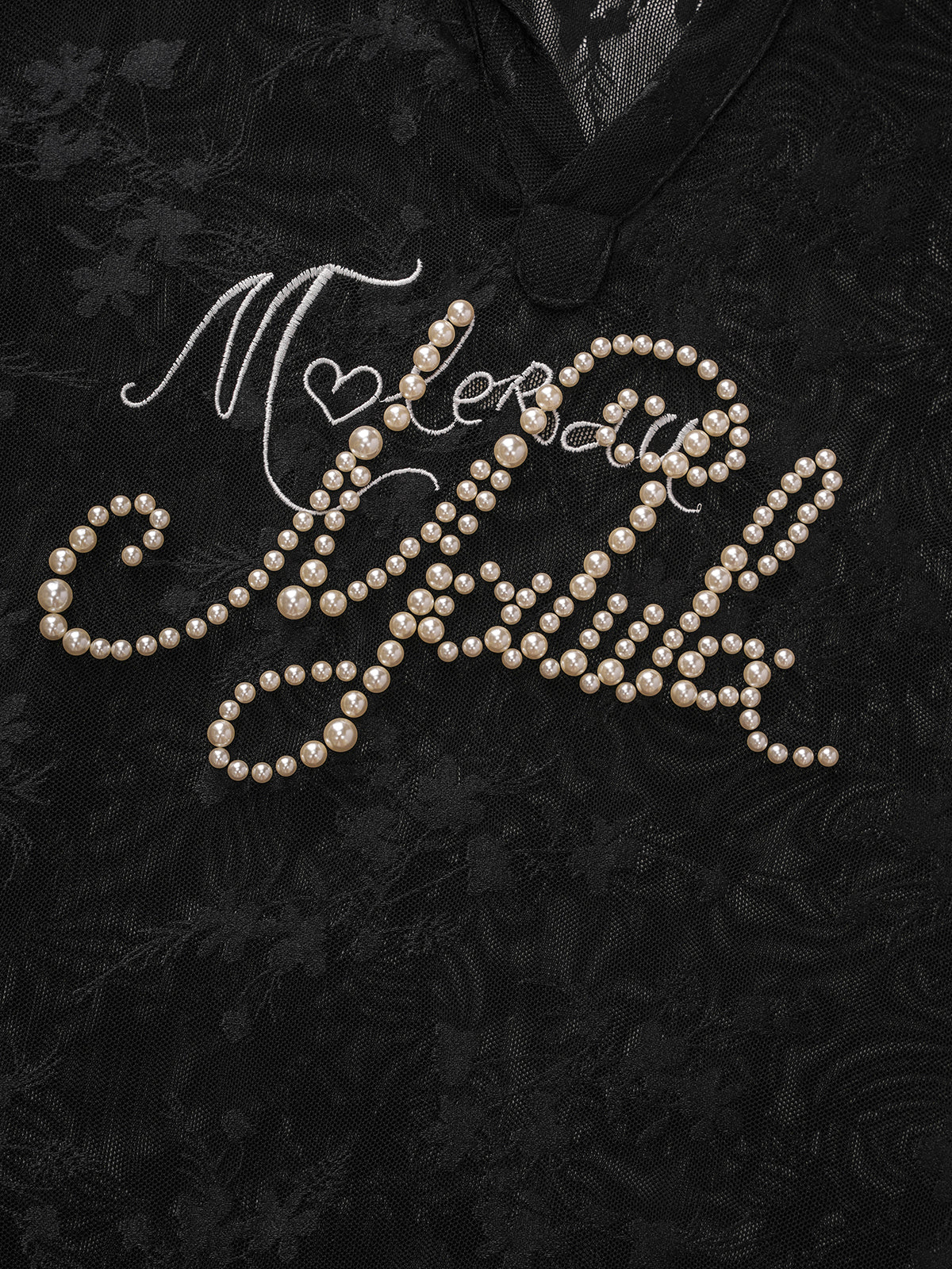 A black shirt that doubles as a canvas, embroidered with playful script in pearl tones. Lightweight, gender-free, and easy to style, it turns a classic into something conversational. Lightweight, gender-free, it’s the shirt that feels as good in a library lounge as it does on the street.