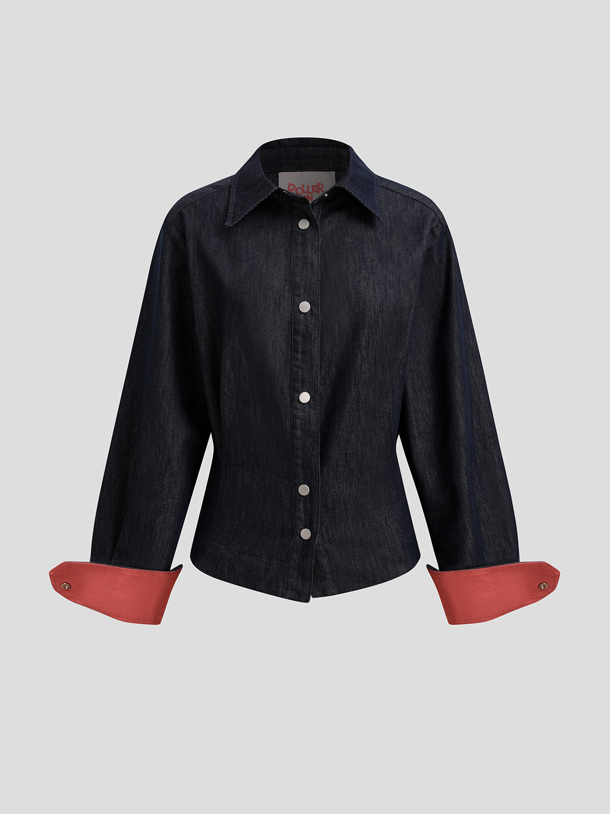 Buttoned-up polish with a secret splash of red peeking through. This shirt balances sharp lines with playful detail, giving you that effortless mix of sleek and unexpected.