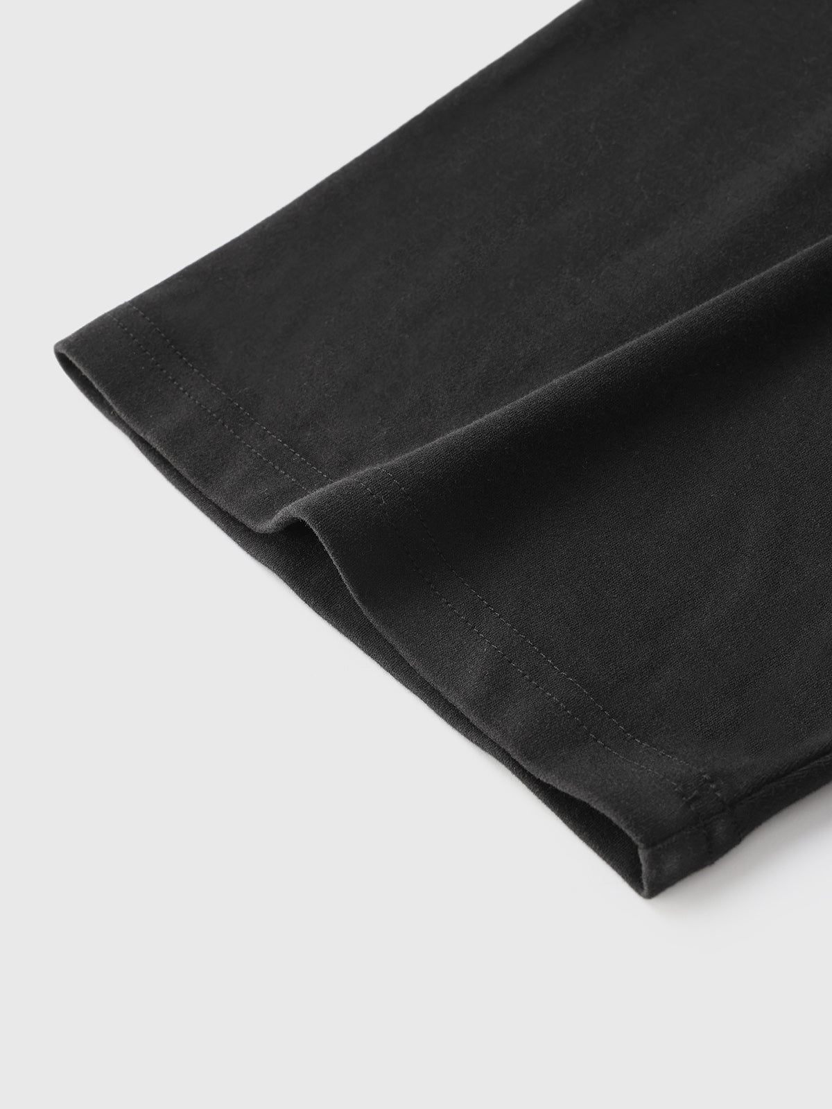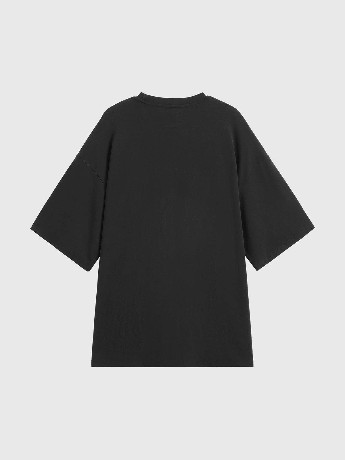 A black oversized tee stamped with a bold yellow moon graphic. Vintage-inspired, casual but sharp—this tee feels like a found treasure, perfect for layering into city looks.