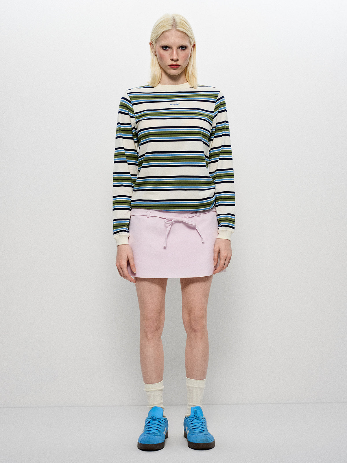 Salty air meets office air-con. These blue-green-white stripes navigate from boardroom to beach bar without wrinkling its poise.