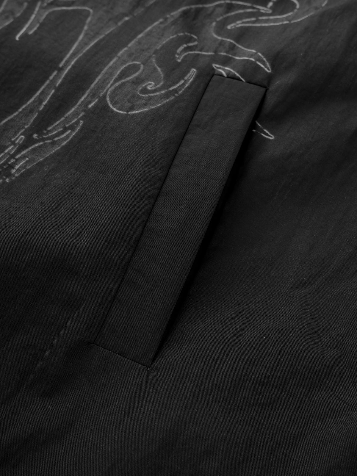 Feather-light shell with a clean front, elastic cuffs, and a drawcord hem for quick shape-shift. The bold back graphic brings main-street attitude. Packs small, dries fast, and levels up errands to “street look” status.