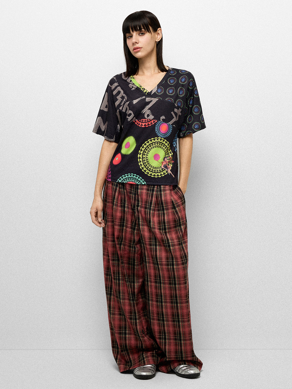 A colorful tee buzzing with neon graphics like club posters at 3AM. Chill fit, loud print. Throw on, log off, head out.