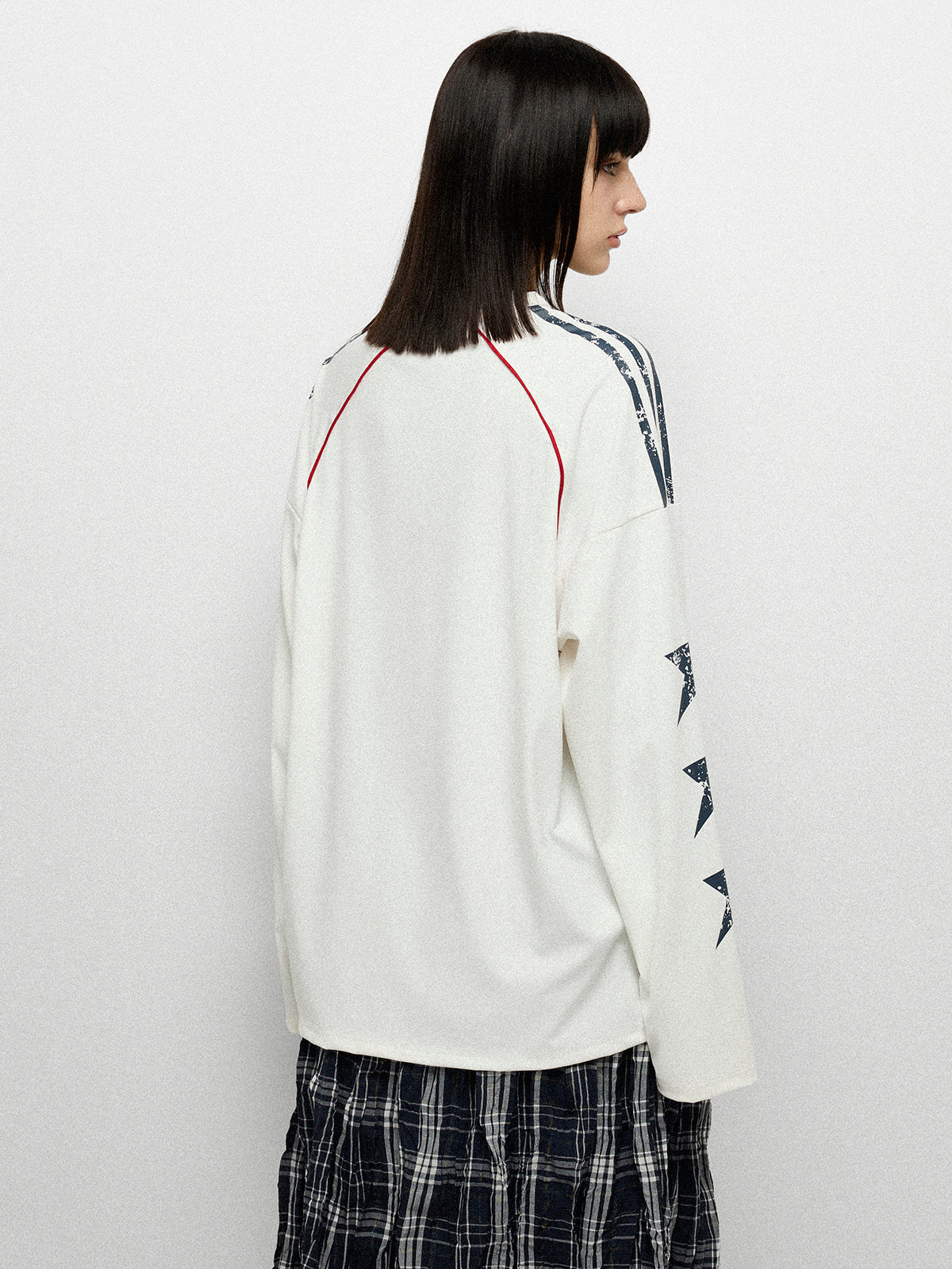 All the attitude of a campus team, minus the drills. With its star-sleeve detail and vintage number print, this sweatshirt keeps things sporty, slouchy, and easy to layer. Perfect for class, games, or just grabbing pizza after.