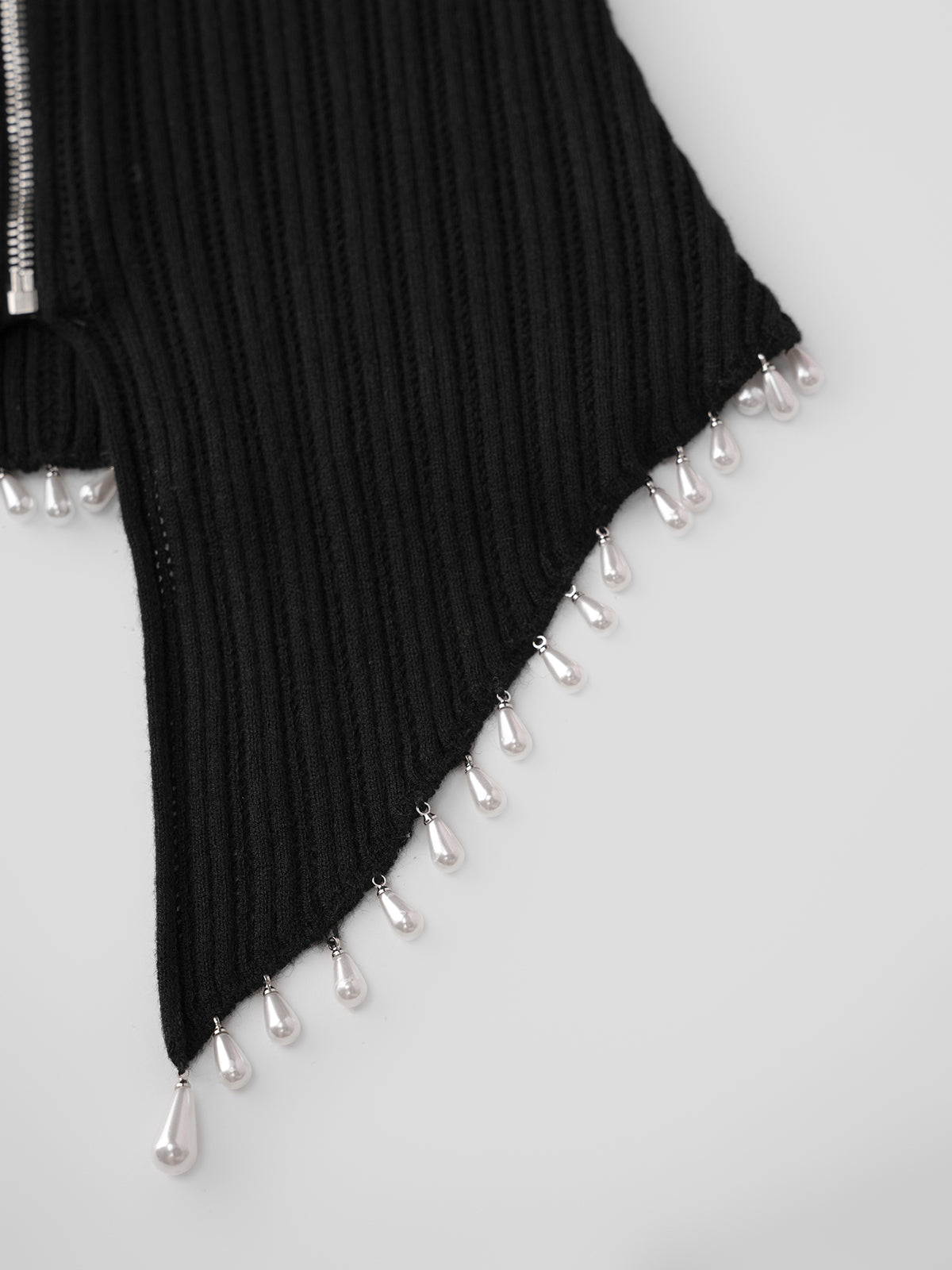 A silhouette of balance and imagination. The fitted knit and pearl-dropped hem create rhythm in motion—poised, radiant, and a touch untouchable. Chic for those who live as their own muse.