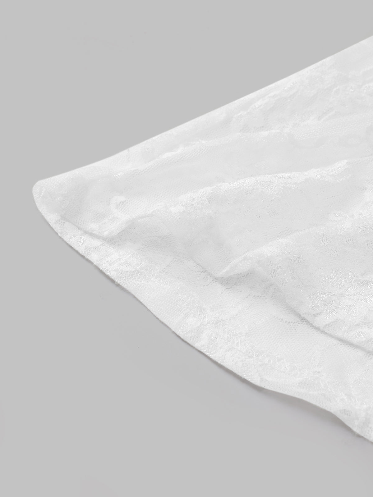 This laced halter top features corset-inspired lines, a full lace finish, and a ruffled skirt hem that softens the shape. Made for layering or standing alone—either way, it’s not asking for attention, but it gets it.