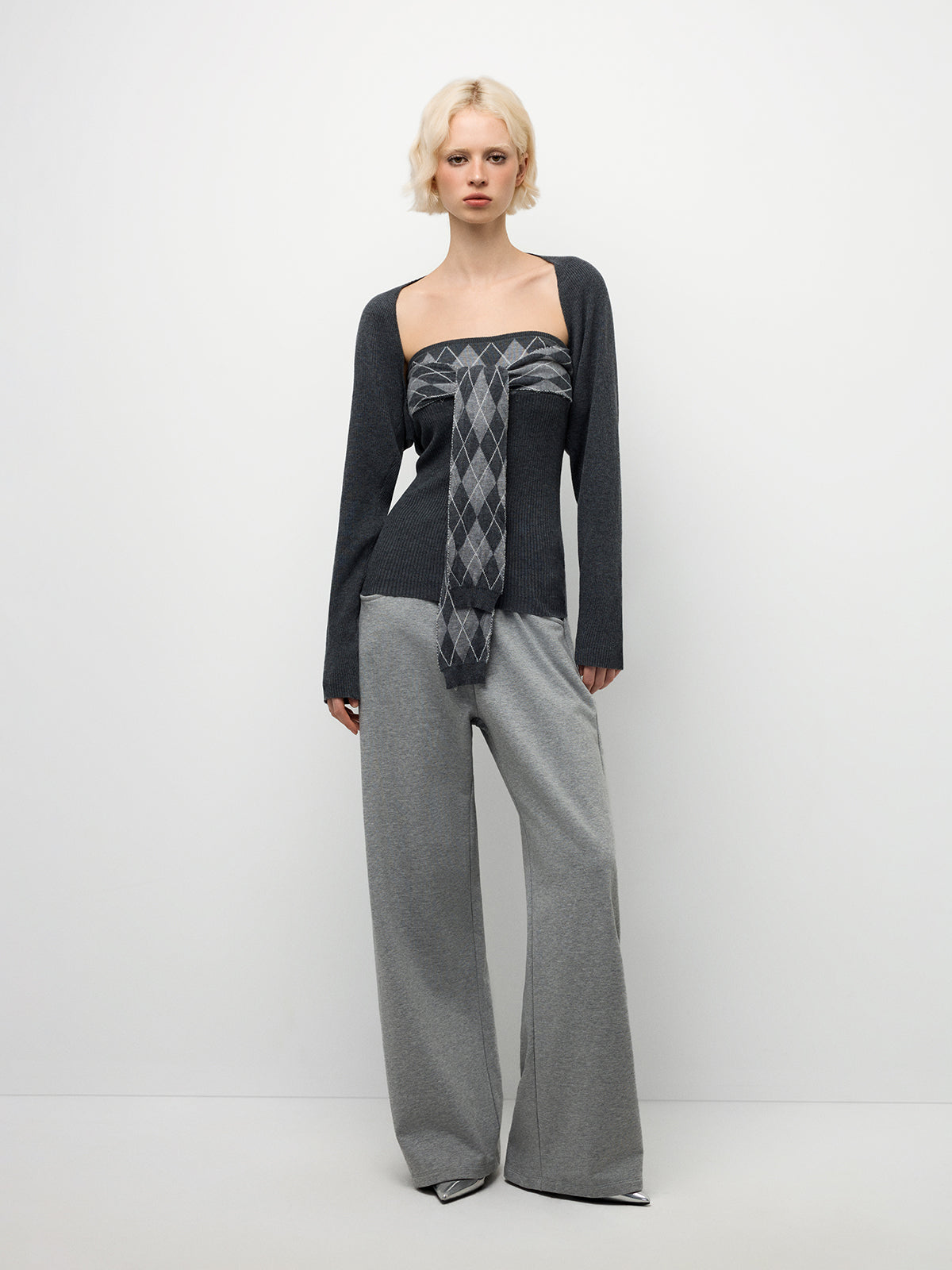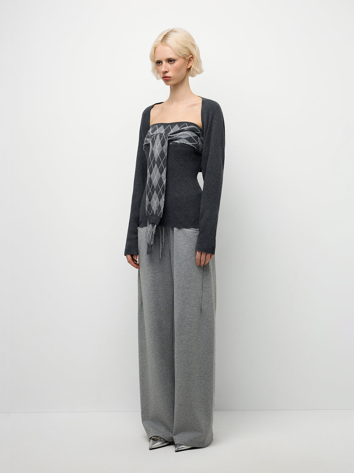 A long-sleeve with quiet brilliance. The draped scarf detail sketches soft geometry across the neckline, creating balance between composure and vitality. Gentle yet striking, this top carries a resonance that feels timeless but never typical.
