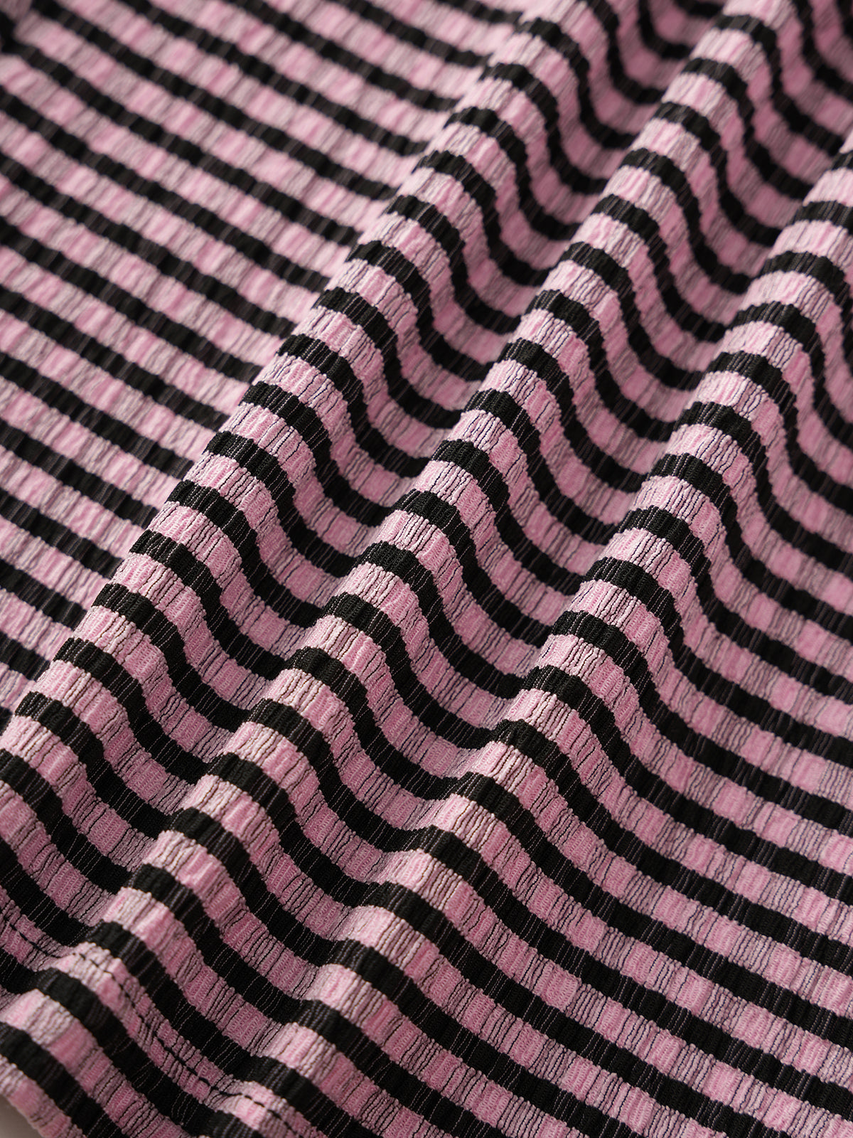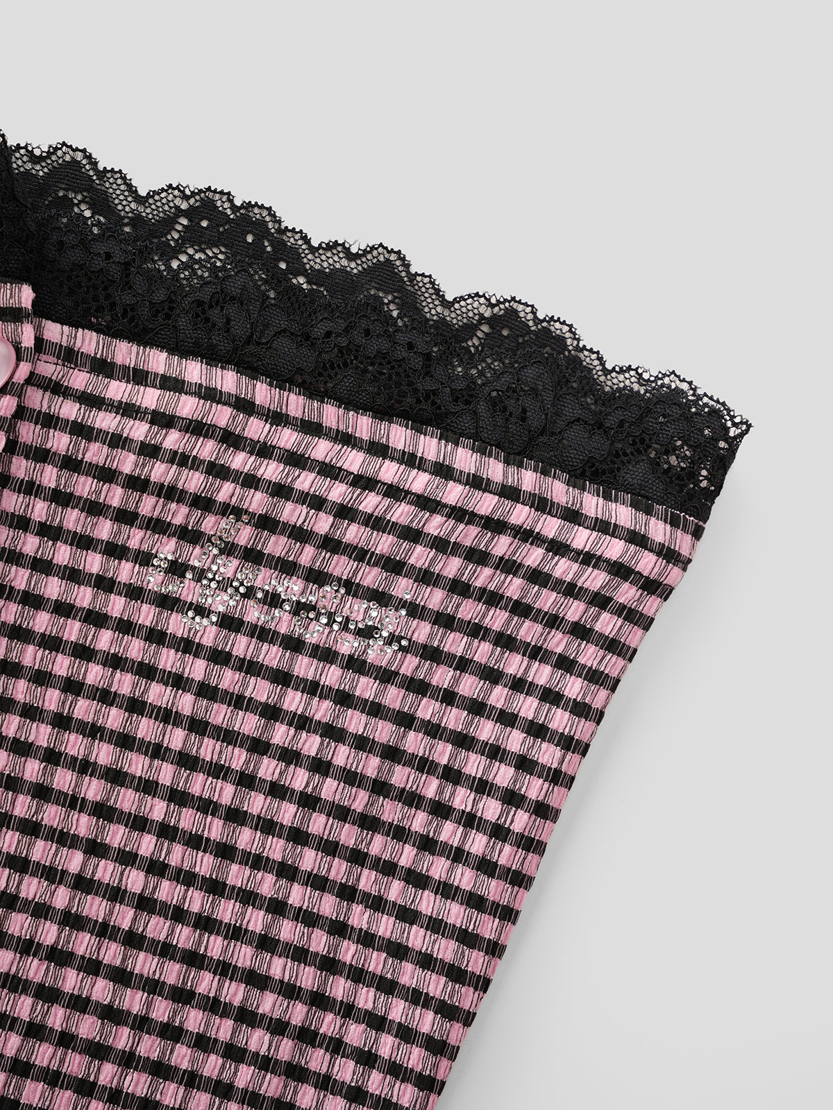 Bold stripes, lace trim, cropped fit. Looks like a vintage find but way easier to wear. Works solo or under a dress when the city chills down.