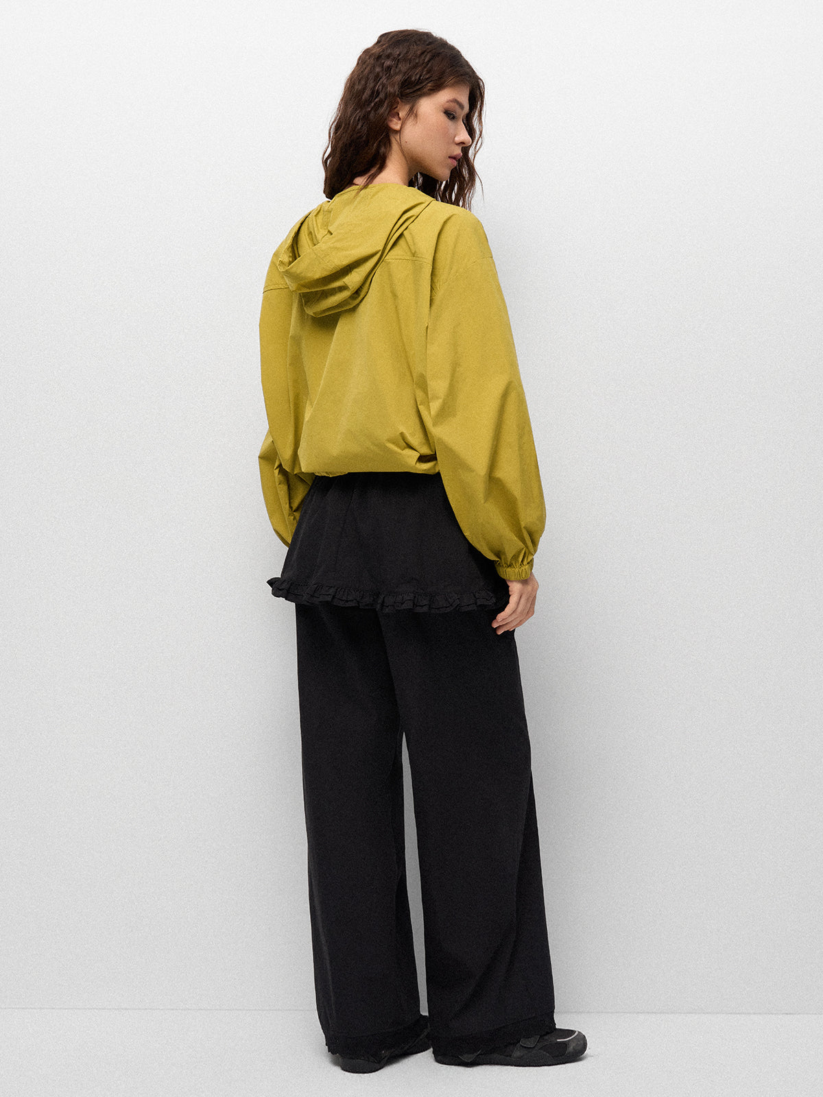 Tailored from 'don’t mess with me' fabric and styled with a flouncy overskirt that whispers 'but I might,' this pair softens the structured silhouette with playful edge—especially when you're screen-sharing and secretly multitasking.