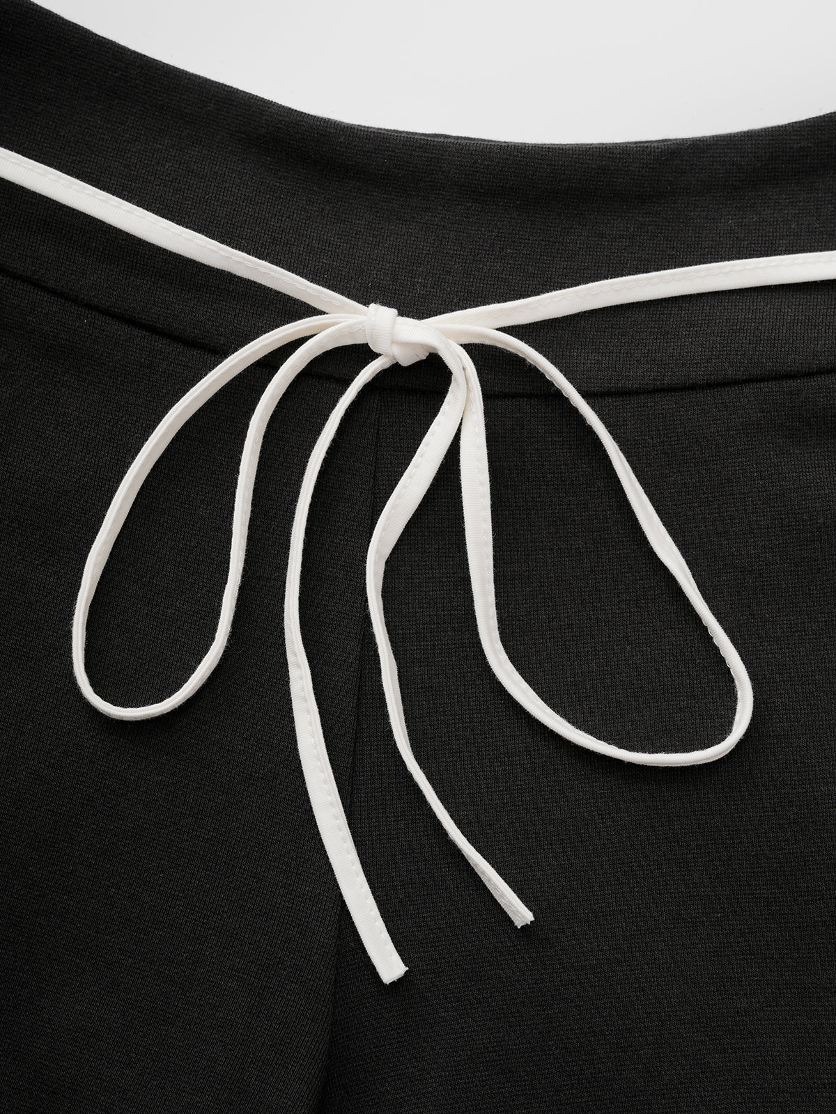 The ribbon drawstring adds a subtle ballet nod. Pair with cropped knits or tank tops for cozy studio hours or boutique strolls between inspirations.