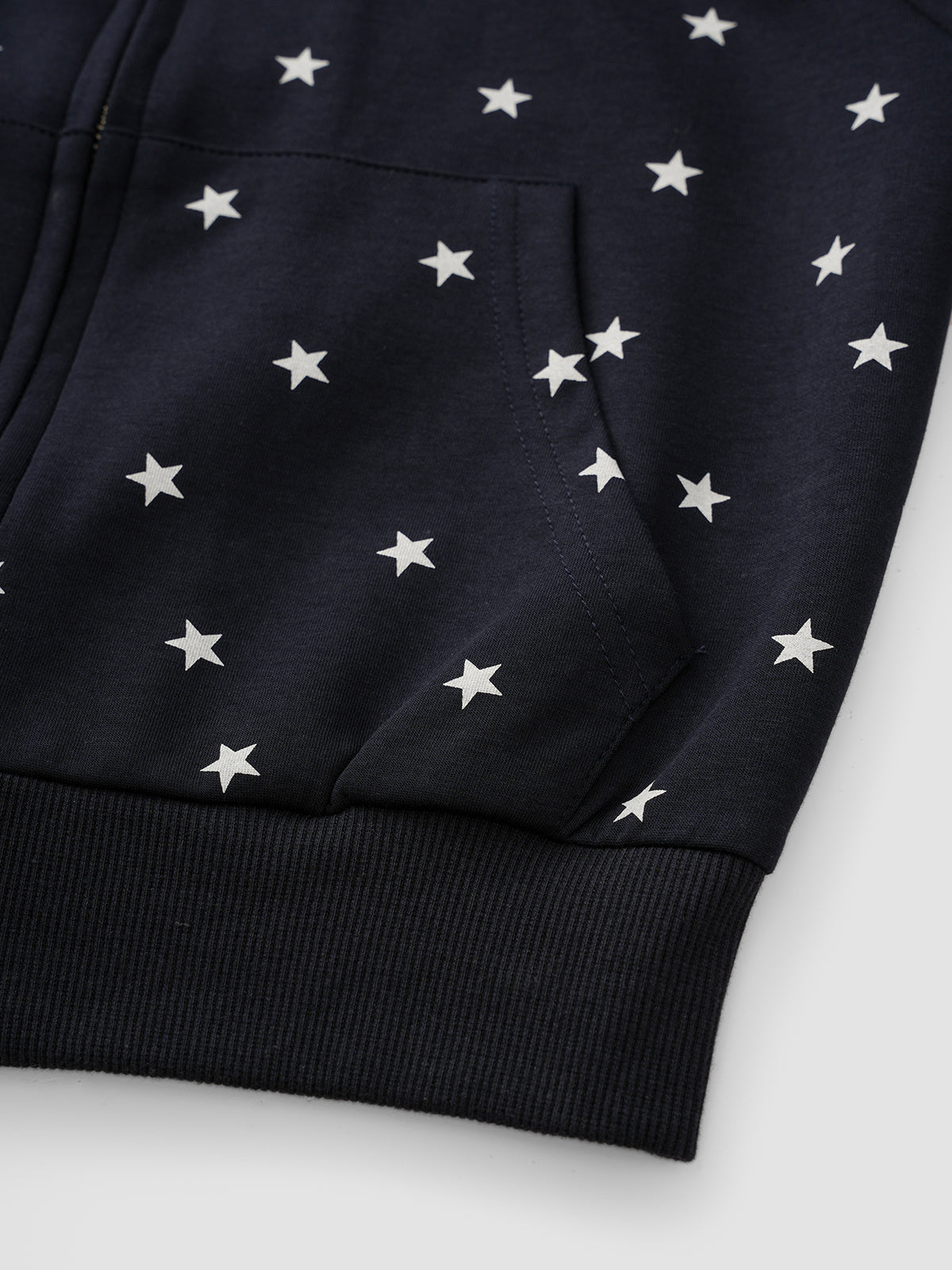 A navy sweatshirt jacket scattered with embroidered stars, bringing subtle drama to a classic silhouette—this jacket is made for those who like their sporty gear with a romantic shimmer. A hybrid of casual comfort and stage-ready detail.