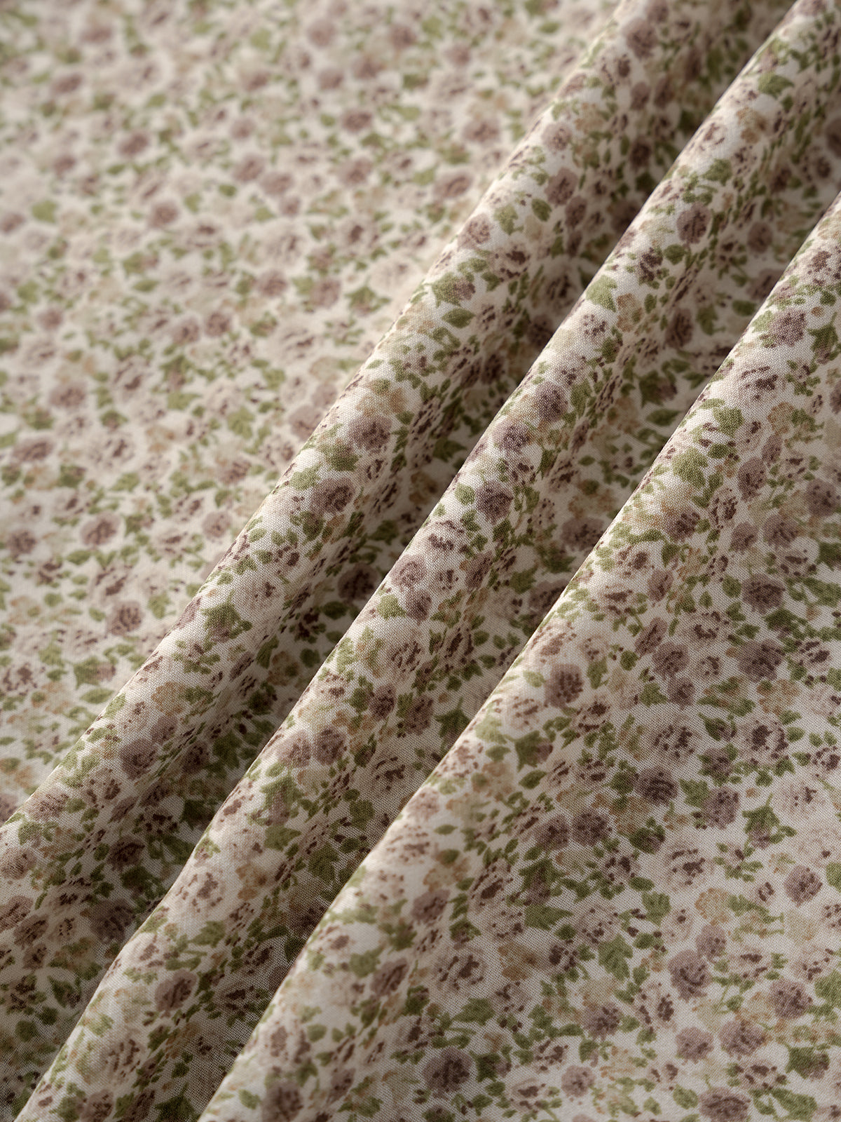 Unfinished Garden Asymmetric Dress – Soft Khaki Floral