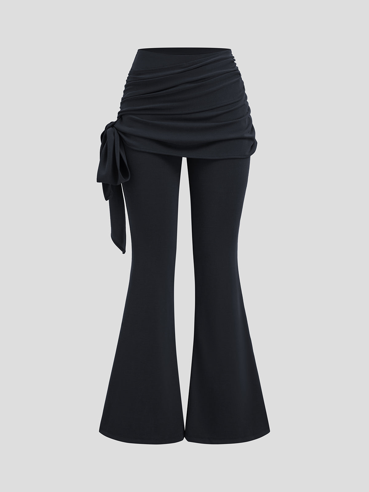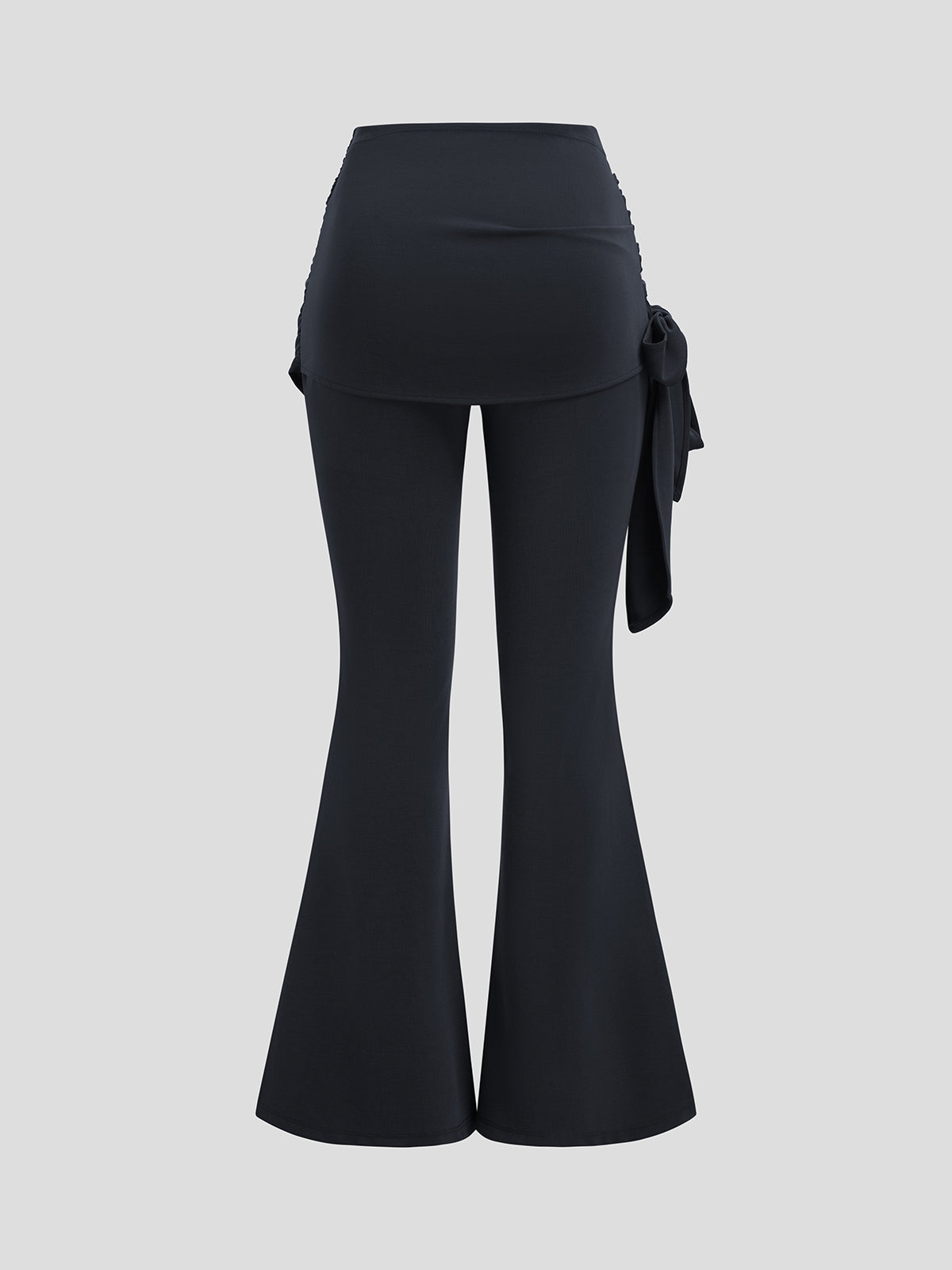 High-waist black yoga pants with a tied waist detail. Sleek stretch meets playful accents, making them just as perfect for studio sessions as for styled-up city strolls.
